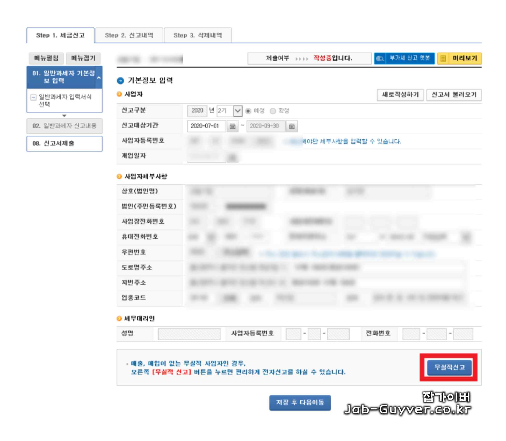 무실적 신고 시 꼭 매출과 매입이 "0"일 경우에 신고하는 것을 주의해야하며 무실적으로 신고하는 방법을 잘 따라하시면 부가가치세 신고에 어려움 없이 성공하실 수 있습니다.