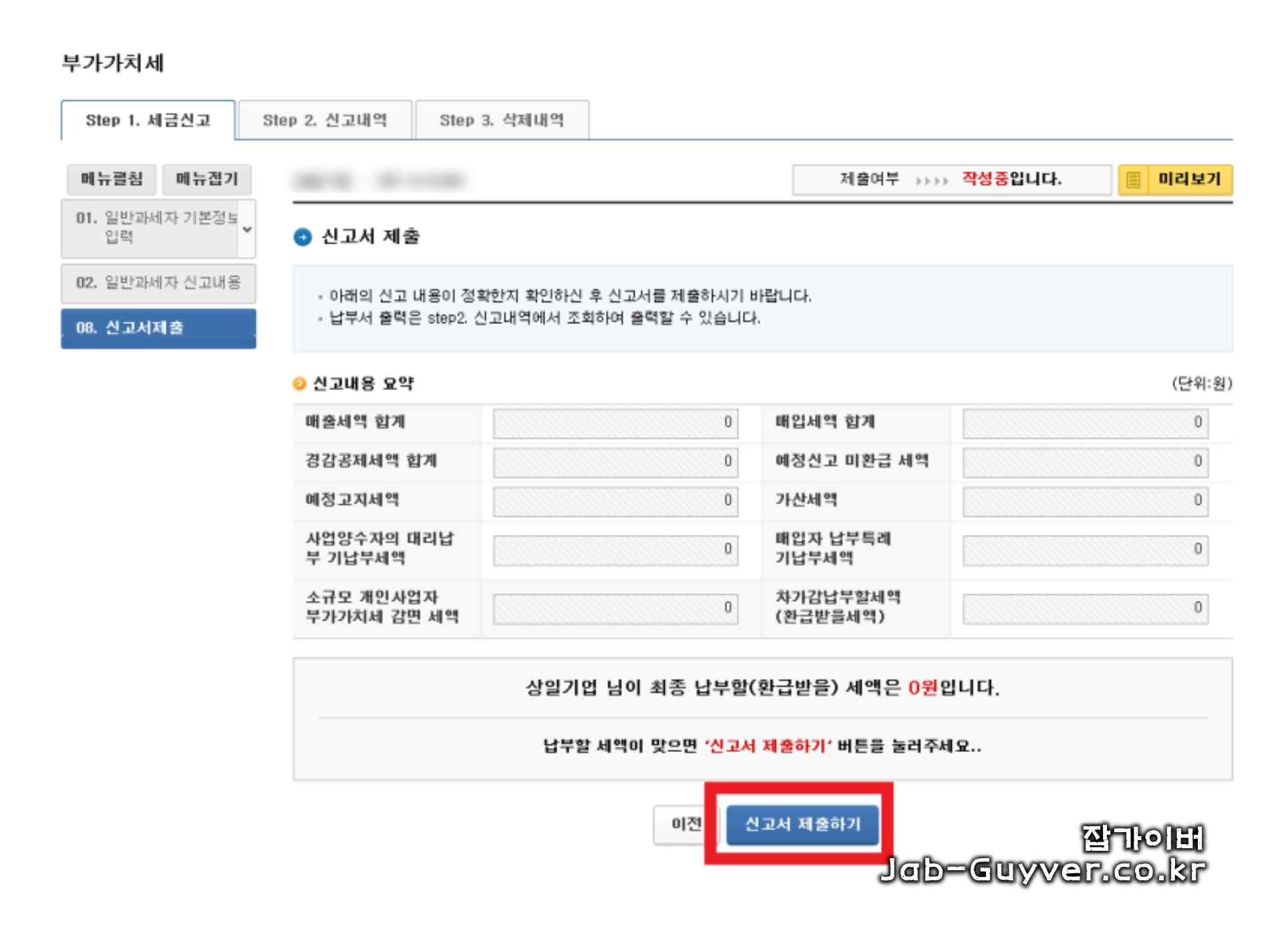 부가세를 전혀 신고하지 않으면 가산세가 부과되기 때문에 주의해야 합니다.