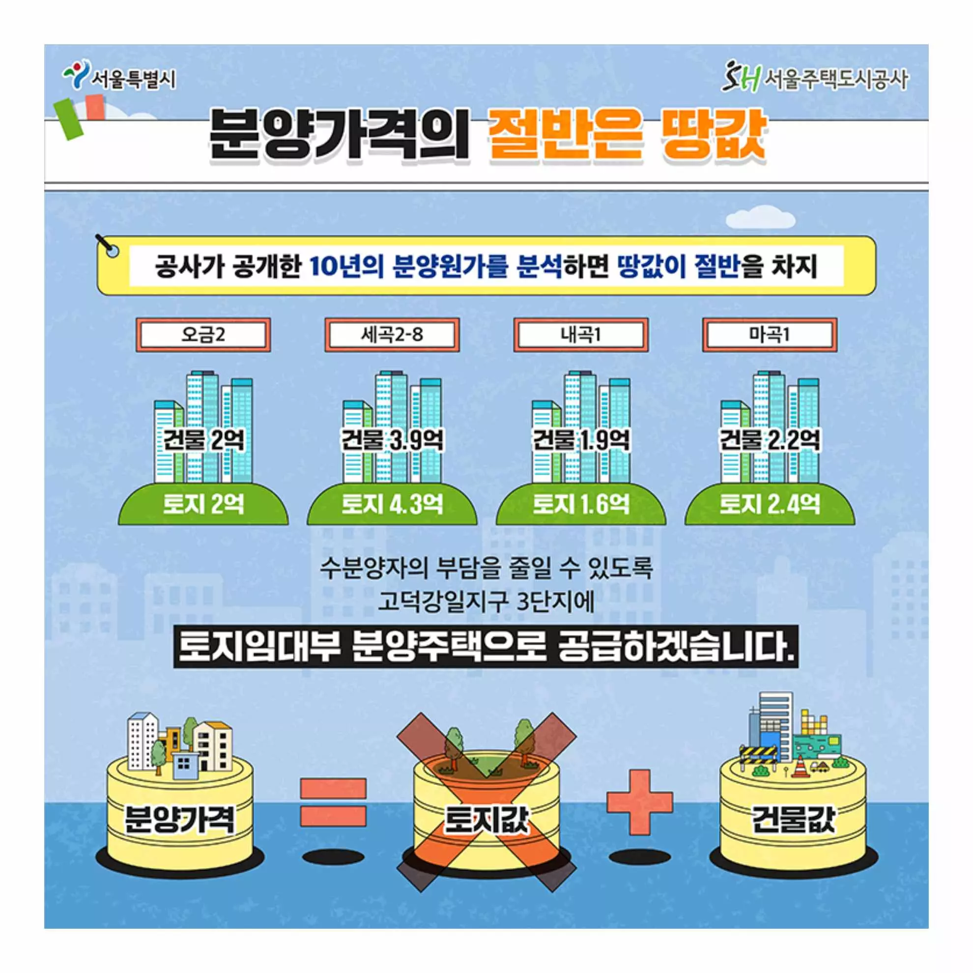 토지임대부 주택은 토지와 건물의 소유가 분리된 형태의 주택으로, 토지는 공공 기관이 소유하고 건물만 개인에게 분양되는 방식을 채택합니다. 이로써 초기 분양가가 낮아져 '반값 아파트'로 불리며, 고덕강일3단지와 같은 프로젝트를 통해 서울에서 새로운 토지임대부 주택이 공급되고 있습니다.