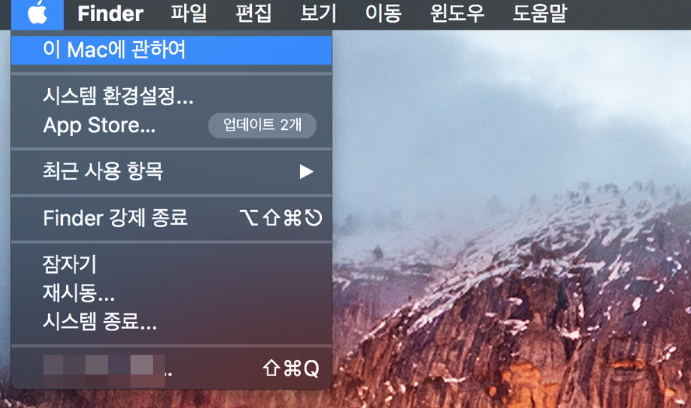 - 상단 메뉴바에서 Apple 로고 → 이 Mac에 관하여