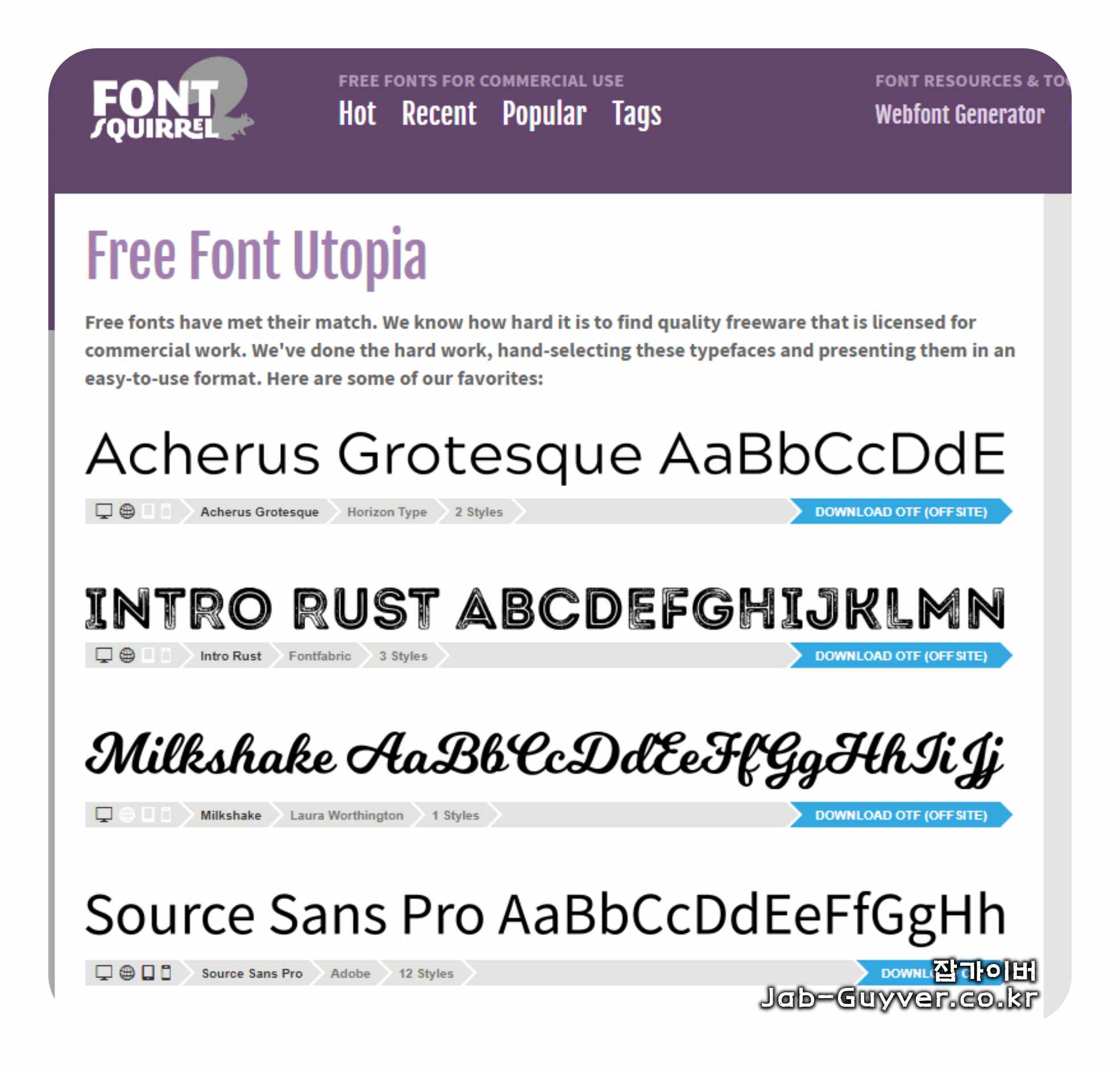 Font Squirrel 영문 상업적 사용 가능한 영문 무료 폰트만 제공
