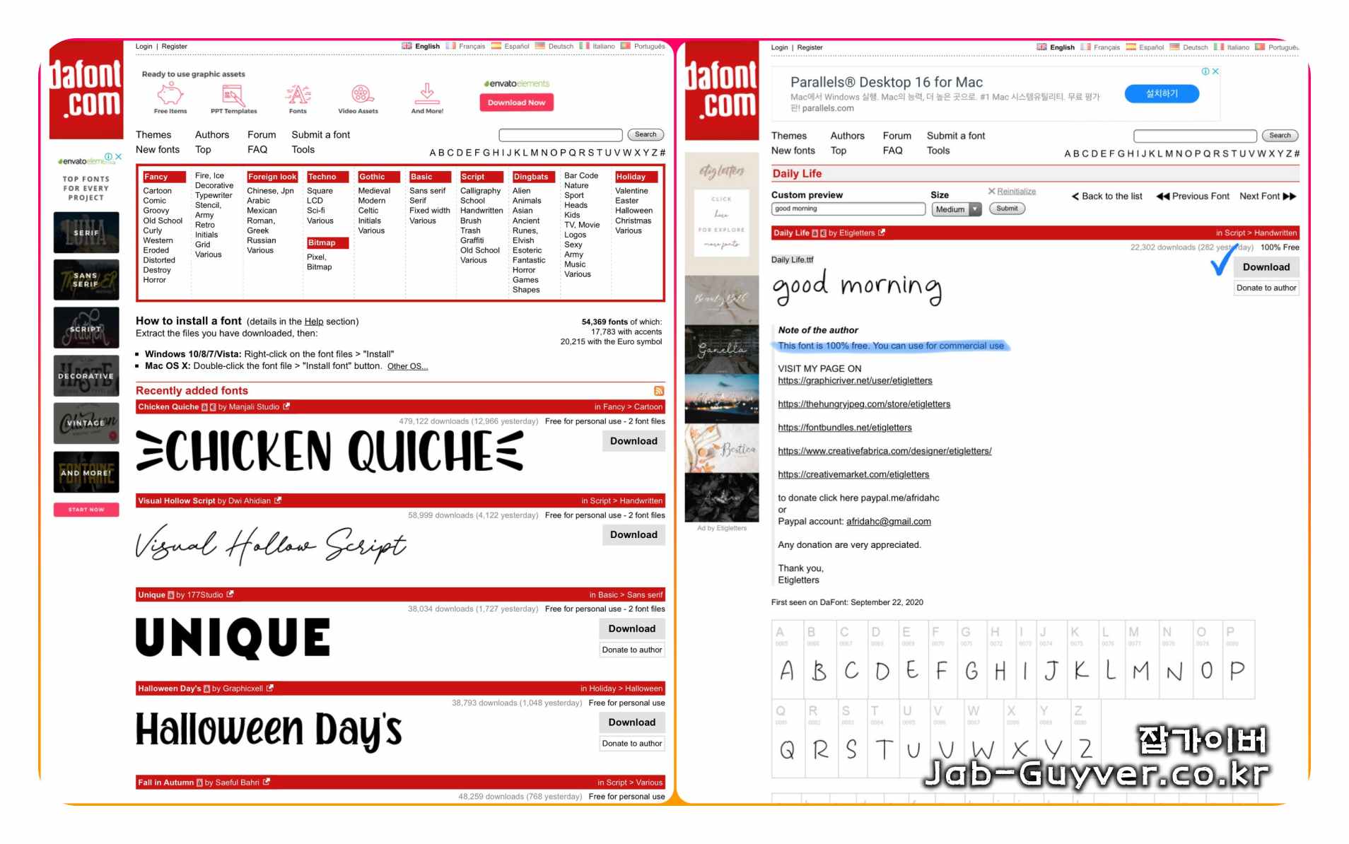 dafont 영문 다양한 테마별 영문 폰트 제공