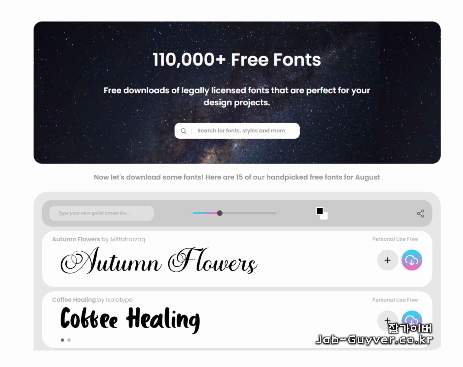 다양한 무료 폰트를 제공하는 사이트로, 개인용 및 상업용 폰트를 선택하여 다운로드할 수 있습니다.