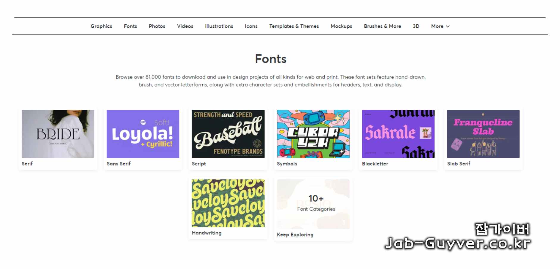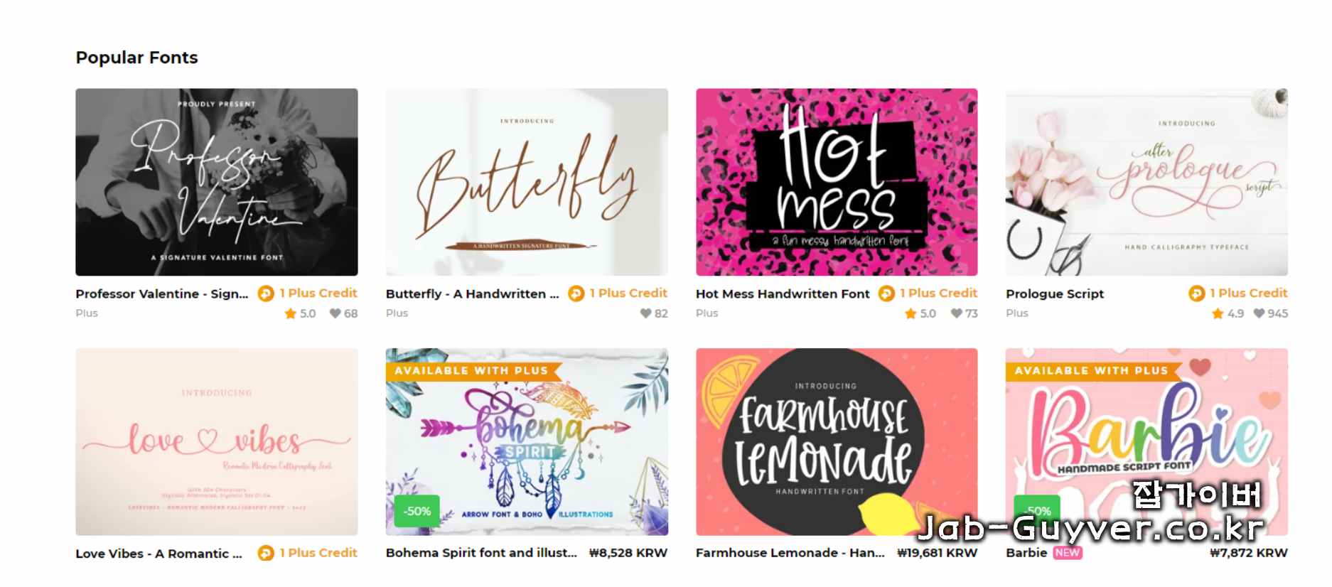 다양한 디자인 자원을 판매하는 사이트로, 무료 폰트 뿐만 아니라 그래픽 디자인 자원도 다운로드하여 활용할 수 있습니다.