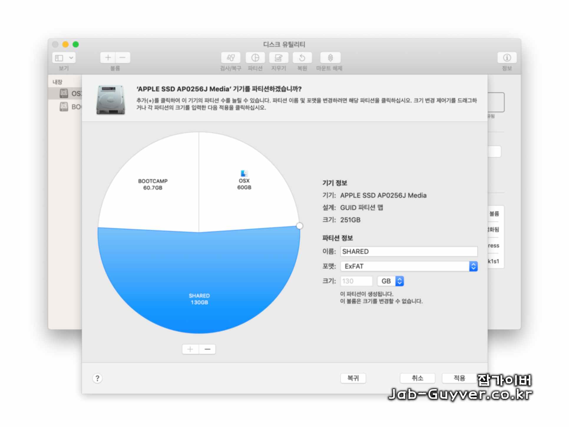 맥북의 파일 시스템에 발생한 오류로 인해, 파티션 생성이나 파일 복사 과정에서 문제가 발생할 수 있습니다.