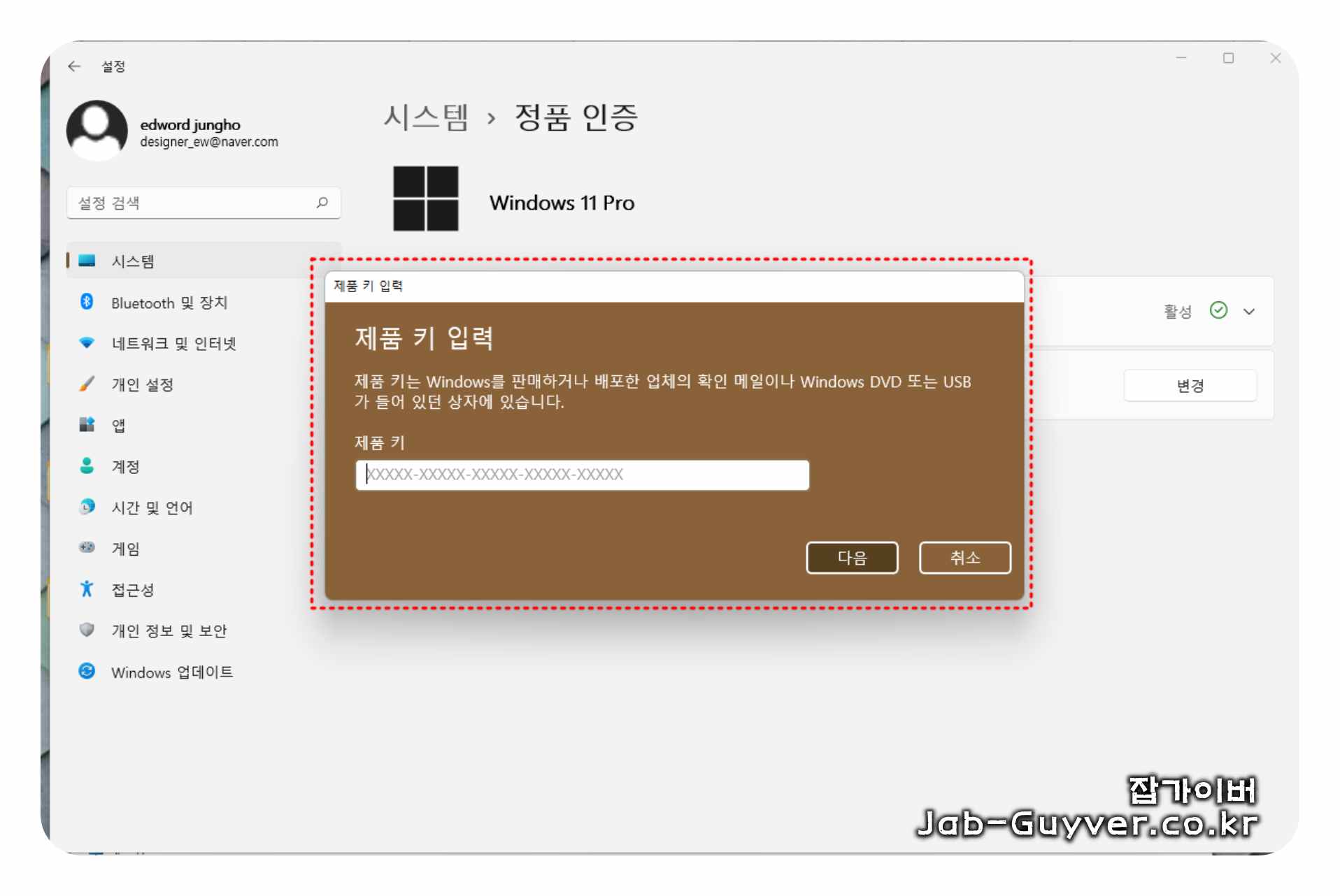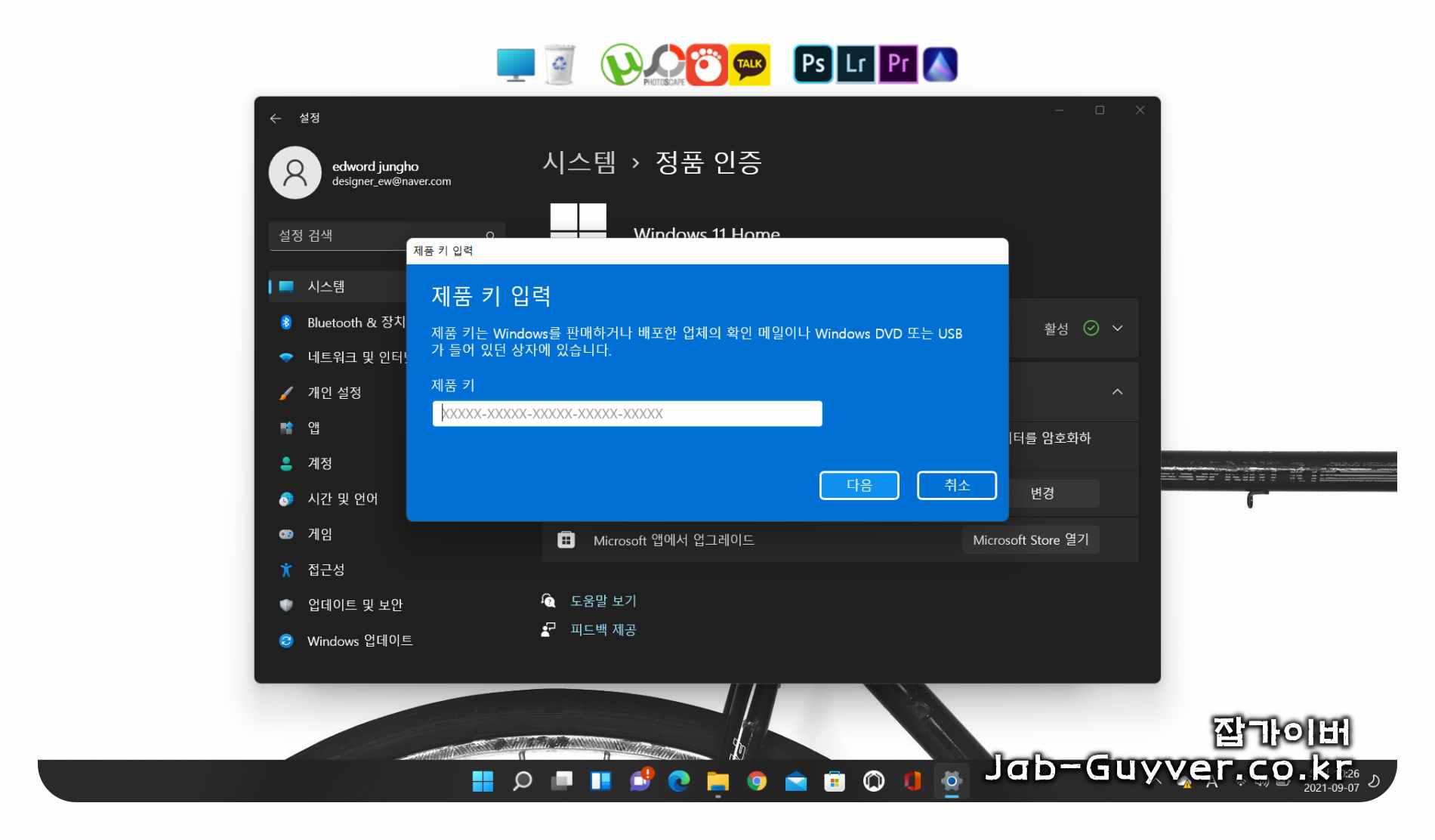 윈도우11 제품키 라이센스 등록방법