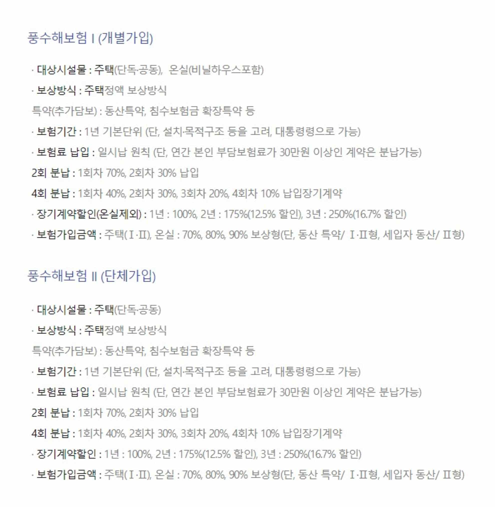 단체가입 주택 풍수해보험(II) 주택 (단체) 단체 동일 동일