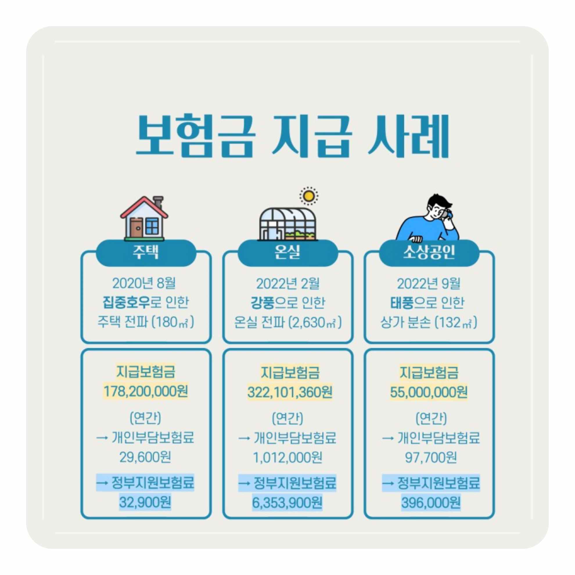 보험료 지원 및 보상 금액 예시