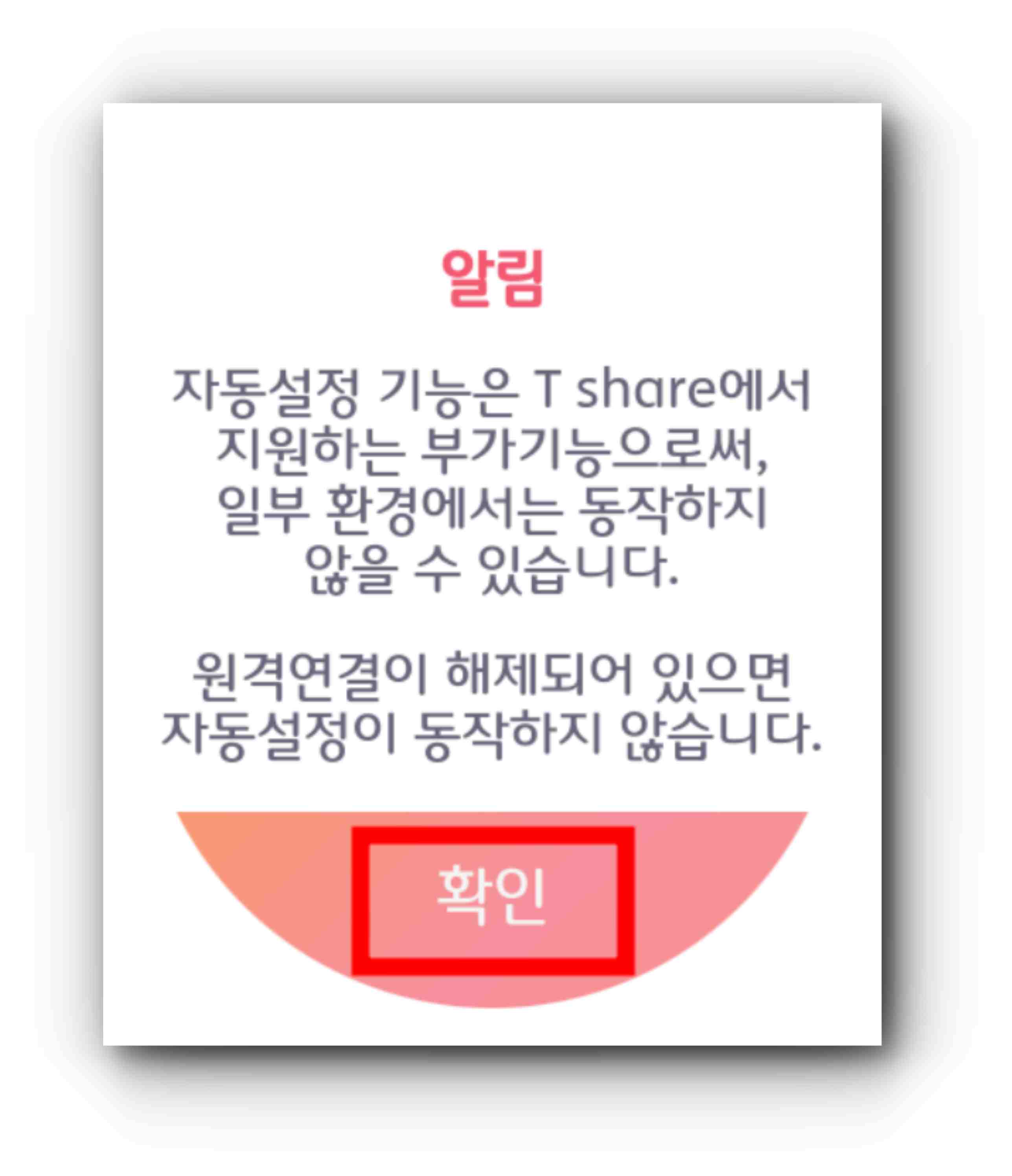- 이 경우에는 수동으로 T share 앱에서 '워치 모드'로 전환해 주는 것이 좋습니다.