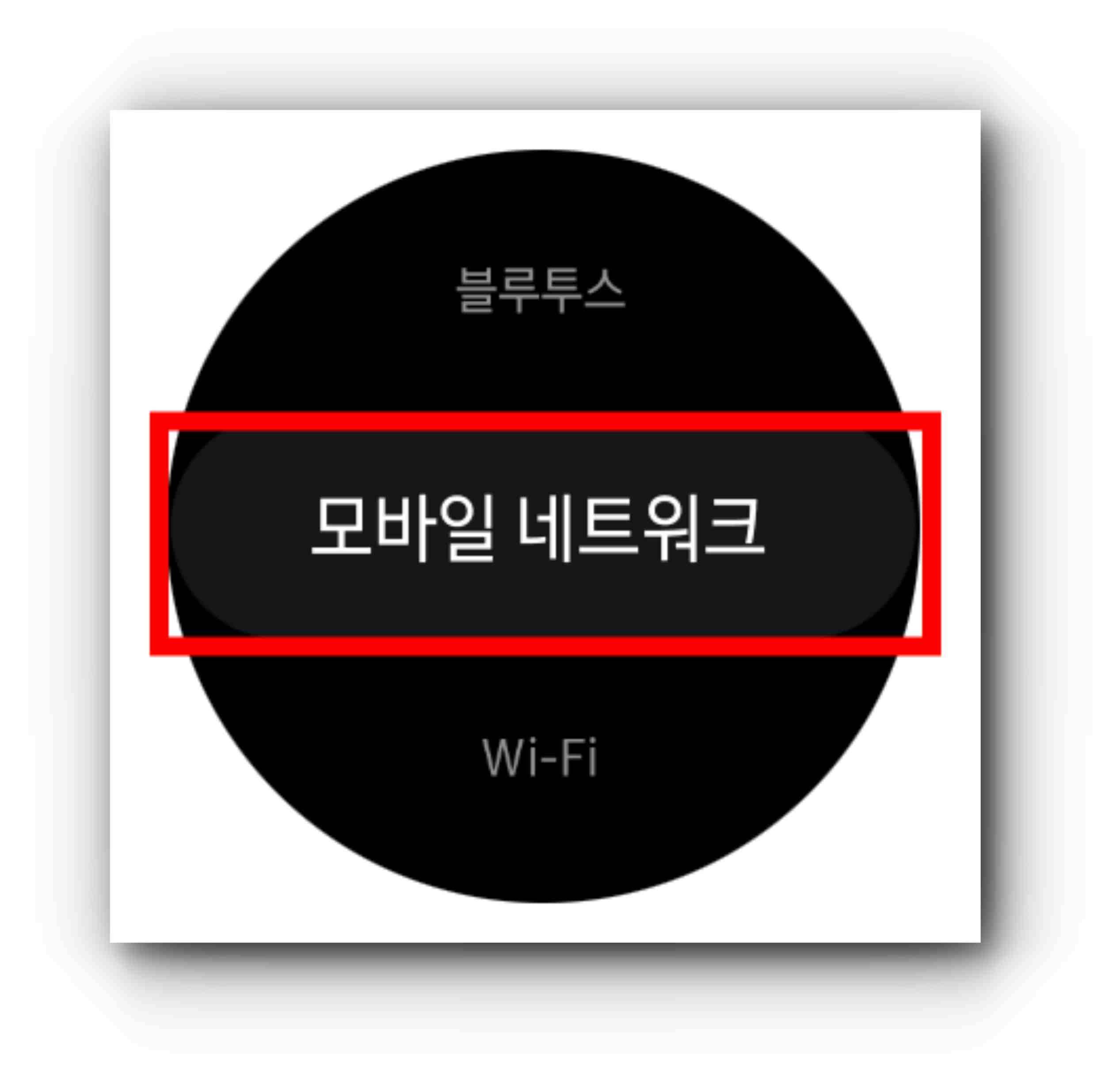 워치에서 설정 메뉴에 들어가 '연결' 항목을 선택한 뒤 '모바일 네트워크'를 클릭합니다.