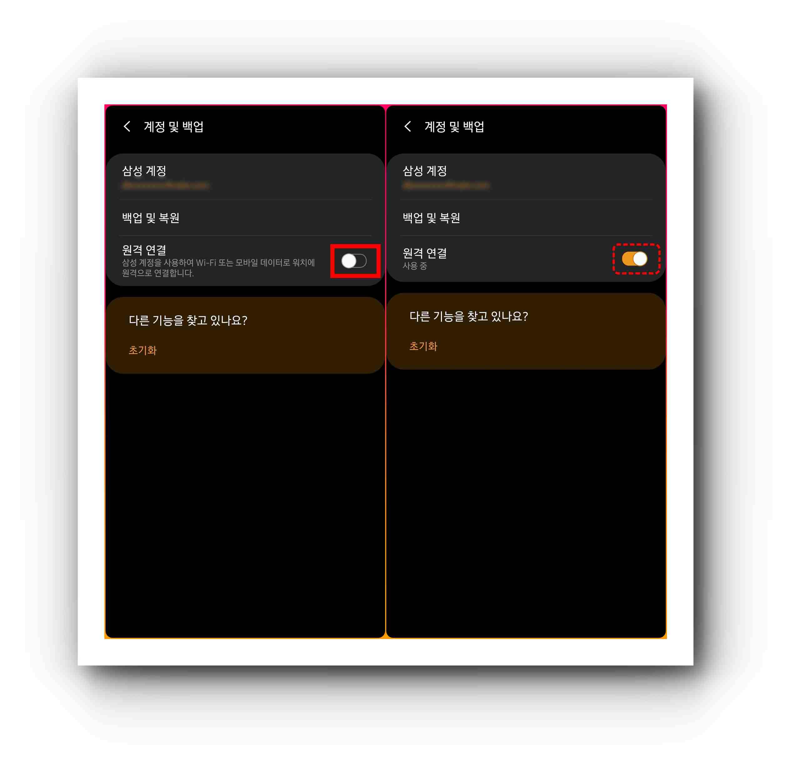 2. 원격 연결 설정: 앱 내에서 '계정 및 백업' 항목을 선택하고 원격 연결을 활성화합니다. 이때 삼성 계정 로그인이 필요합니다.