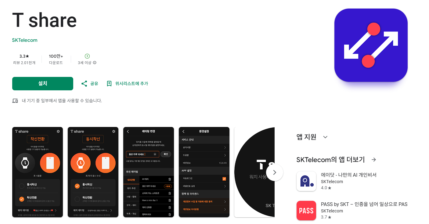T share 앱은 SKT 사용자를 위한 전용 앱이므로 타 통신사 사용자에겐 사용이 제한됩니다.