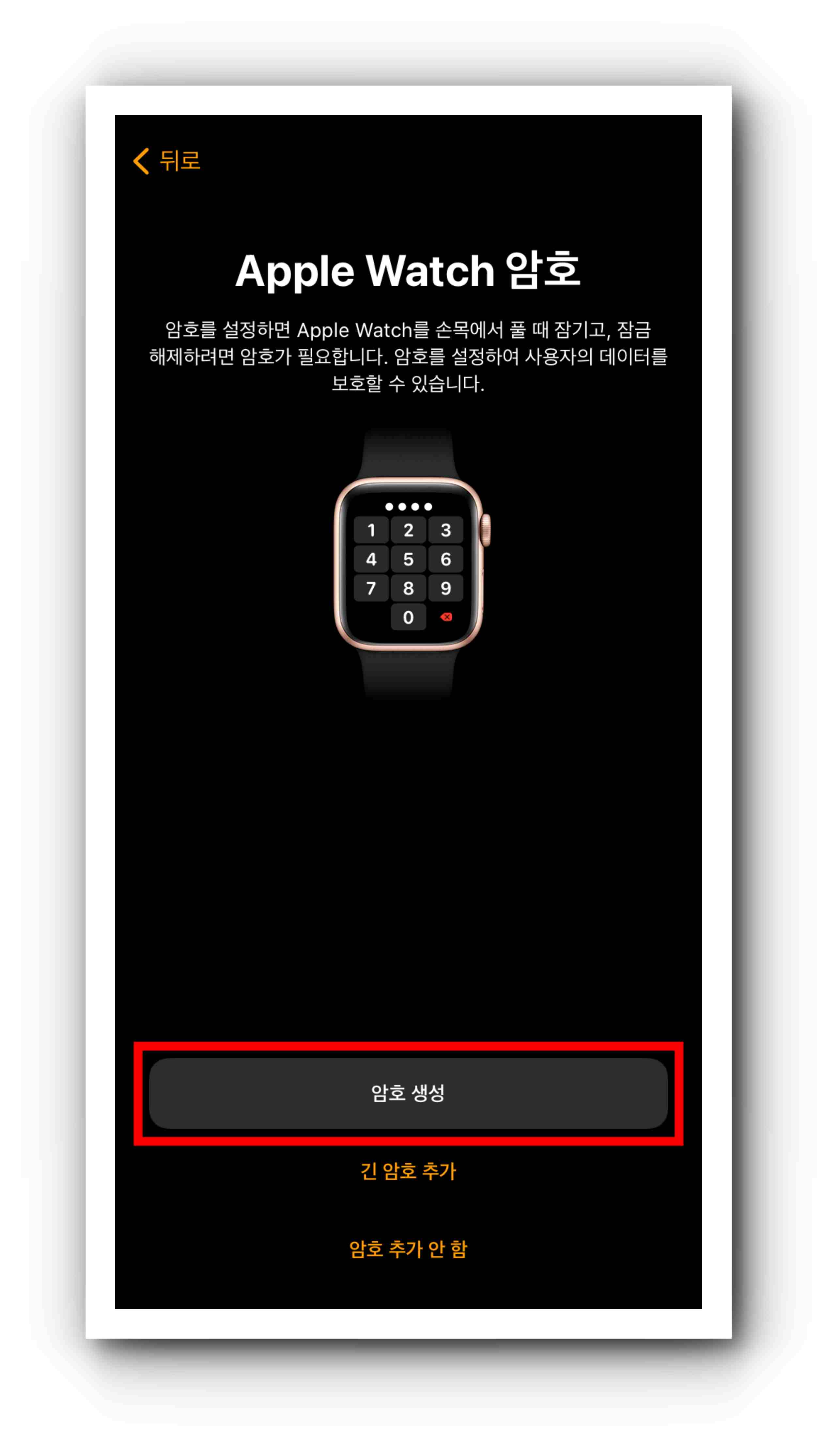 - 애플워치에서 나타나는 그래픽을 비추어 아이폰 카메라로 스캔합니다.