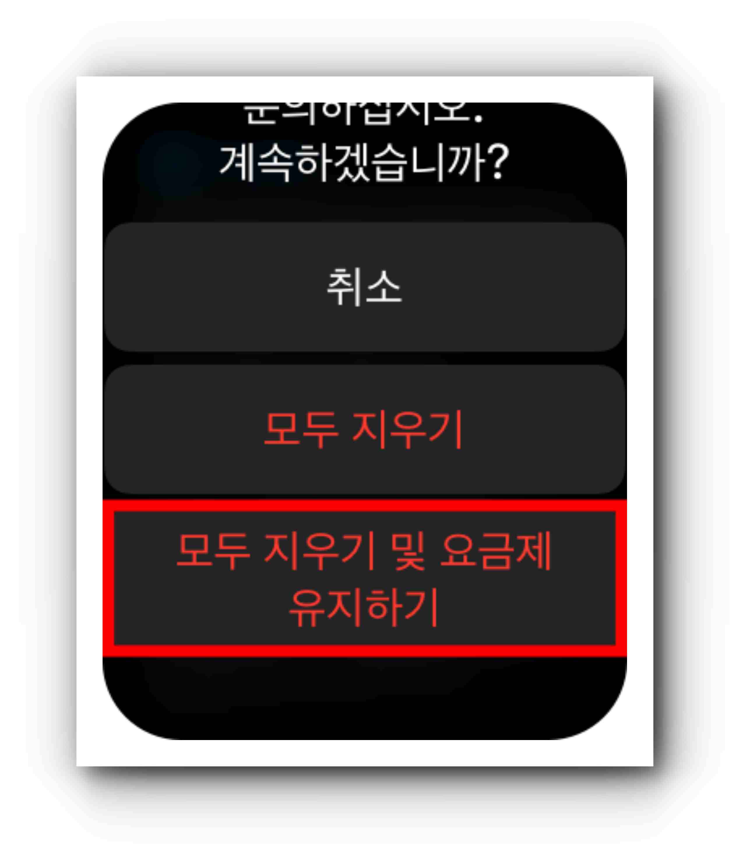- 모두 지우기 및 요금제 유지하기'를 선택하여 애플워치 정보를 삭제합니다.