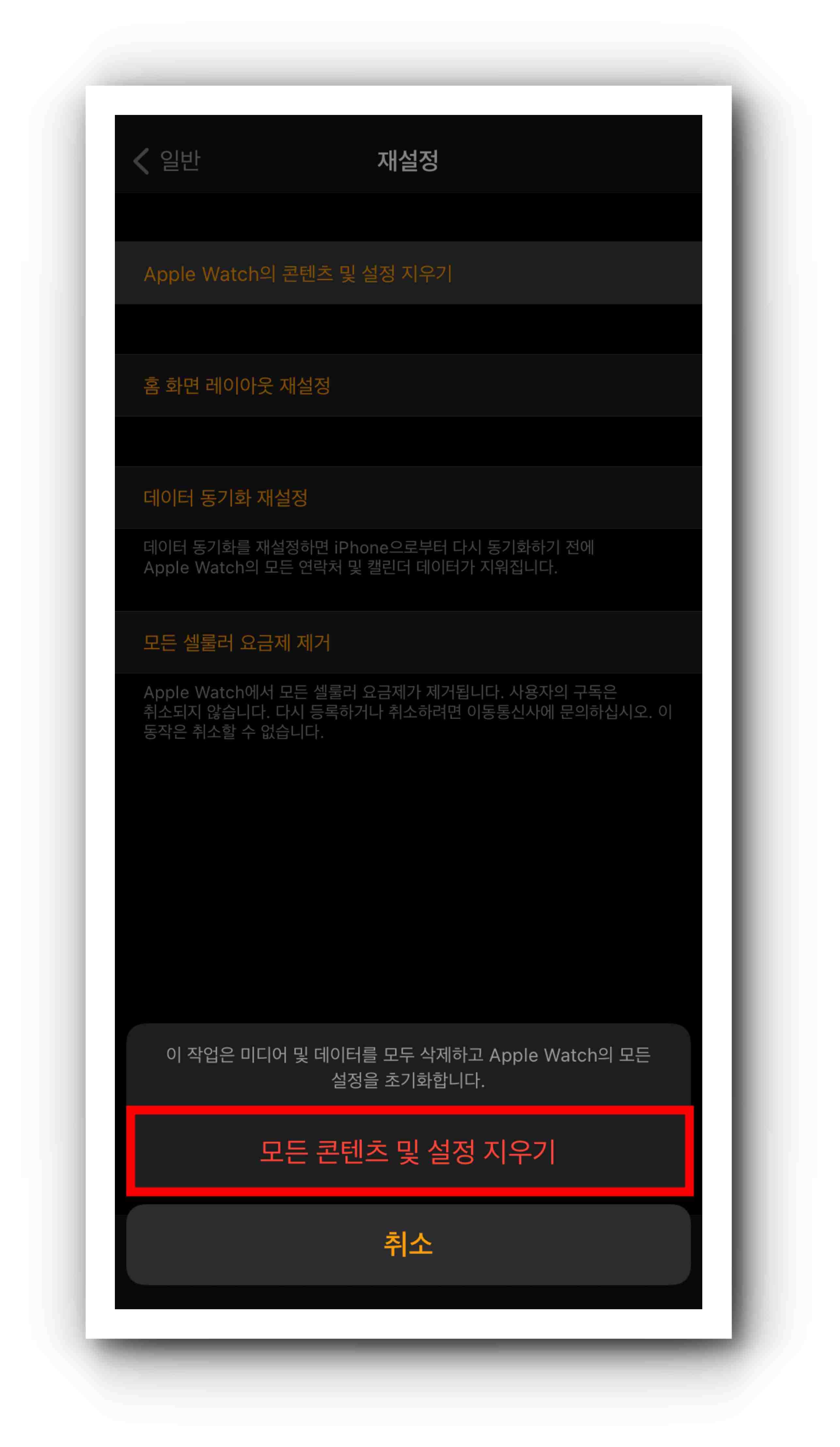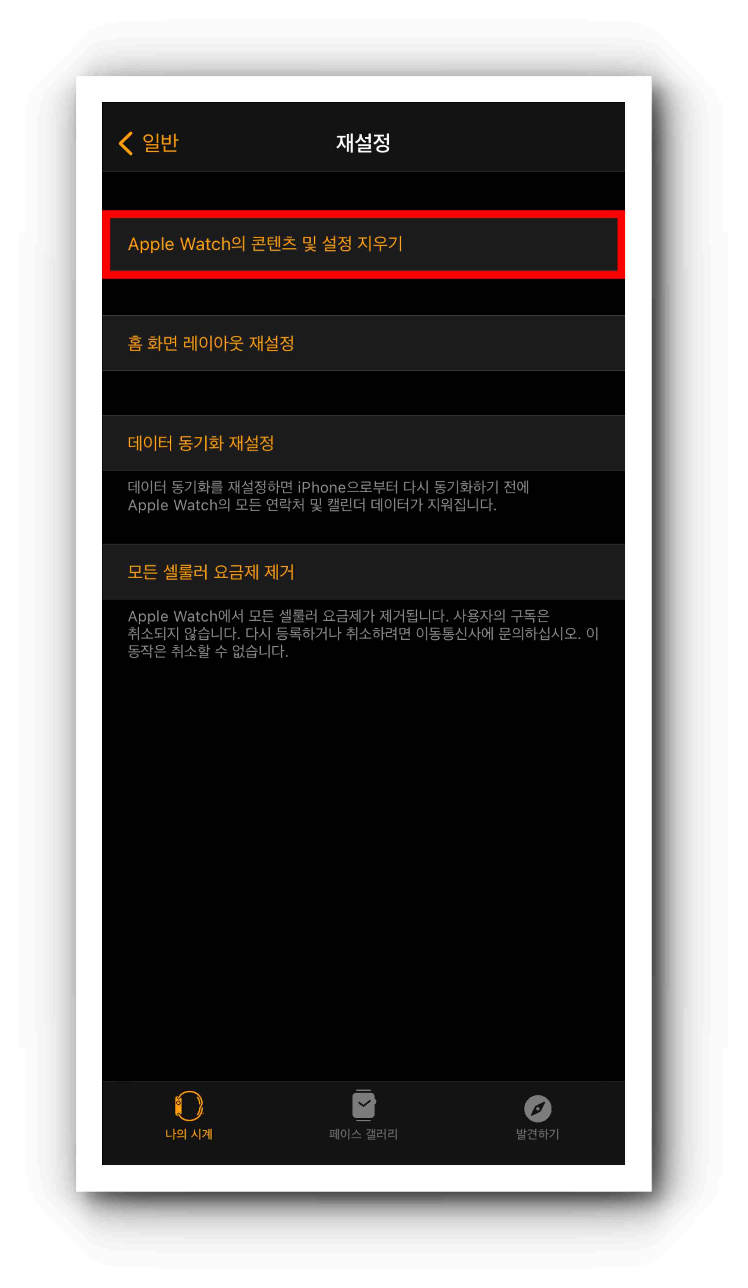 만약 기존 아이폰이 없는 경우, 애플워치의 정보를 삭제해야 합니다.