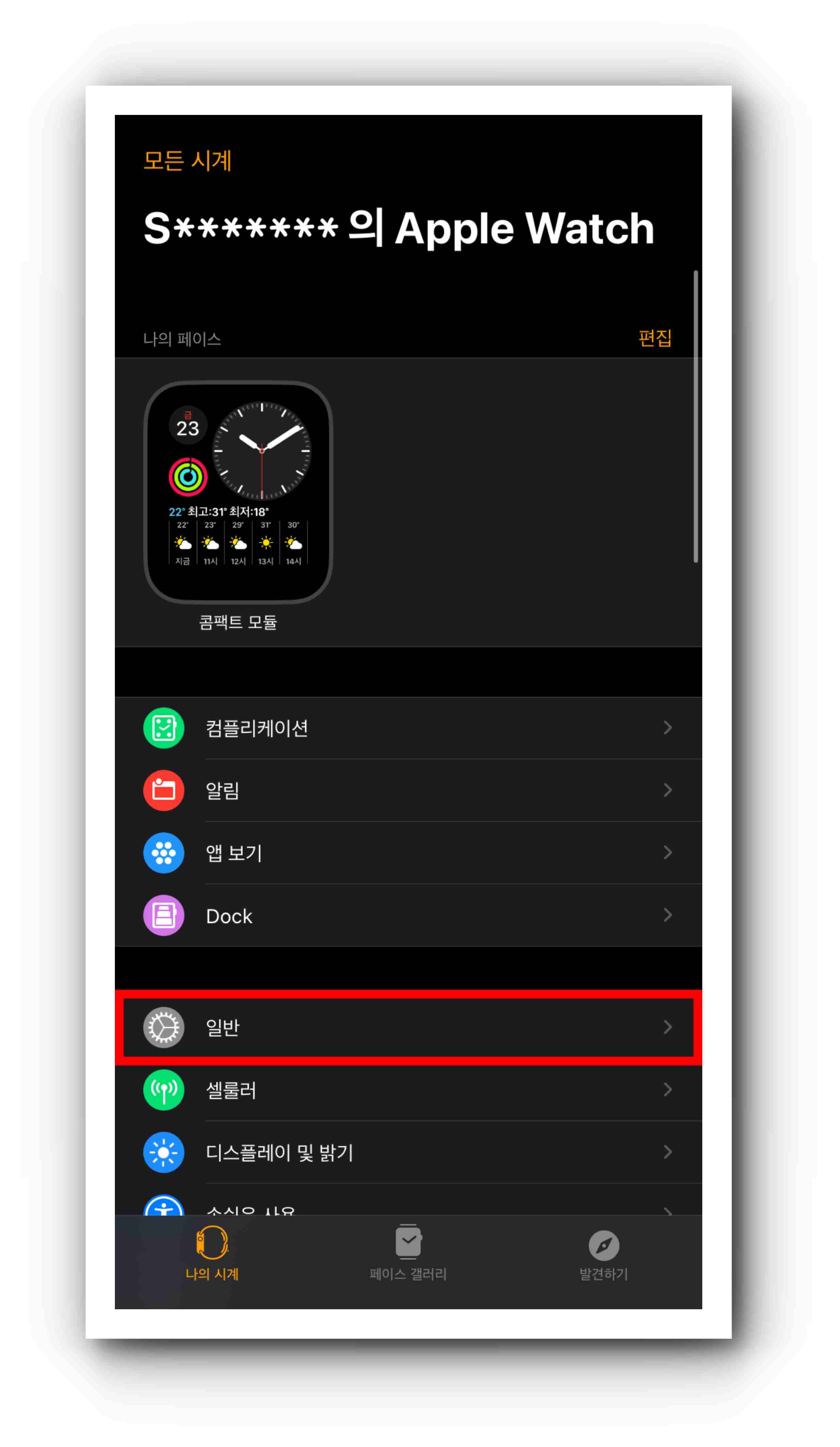 - 아이폰에서 Watch 앱을 실행하고 '일반'을 선택합니다.