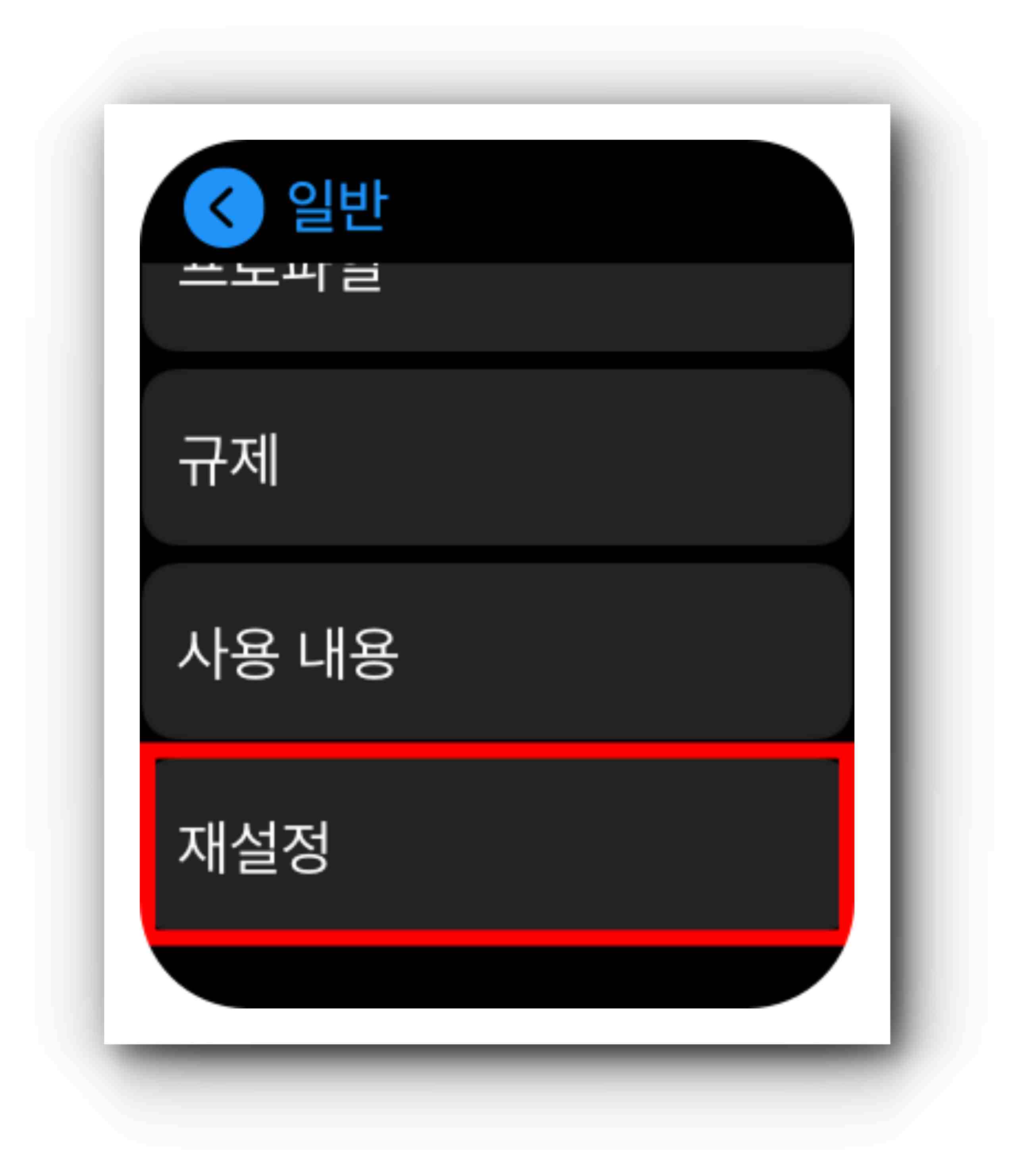 - 화면을 아래로 스크롤하여 '재설정'을 선택합니다.