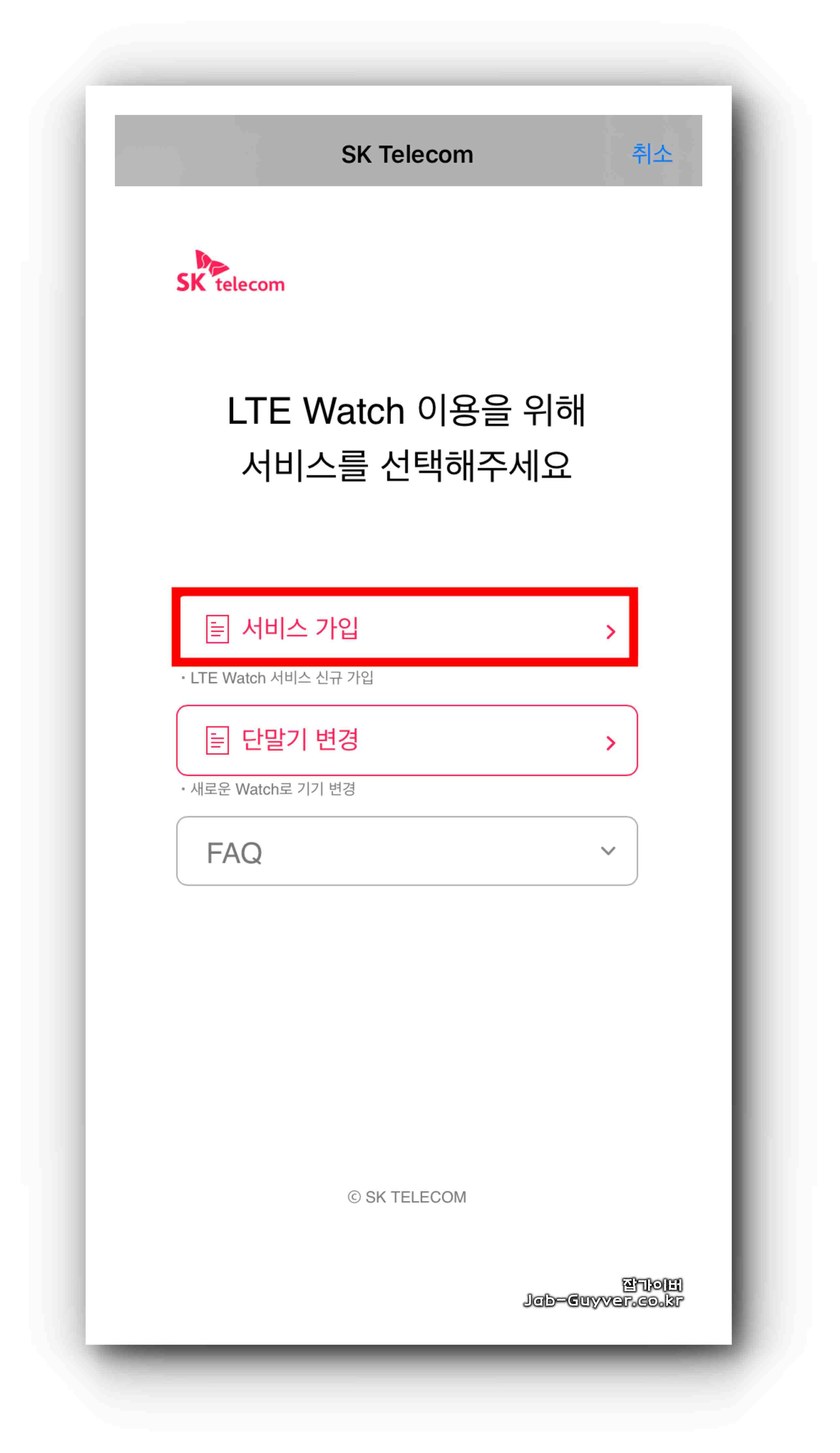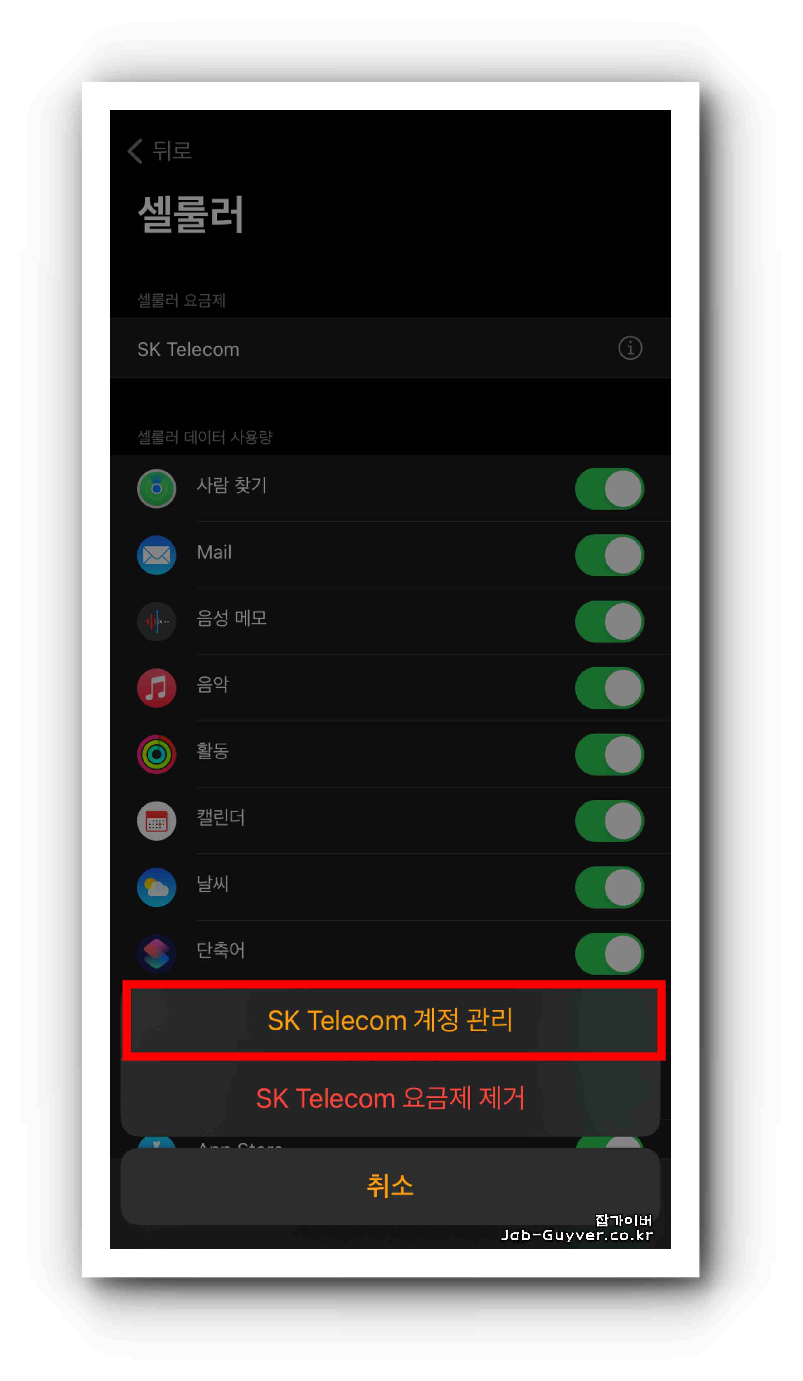 - 'SK Telecom 계정 관리'를 선택합니다.