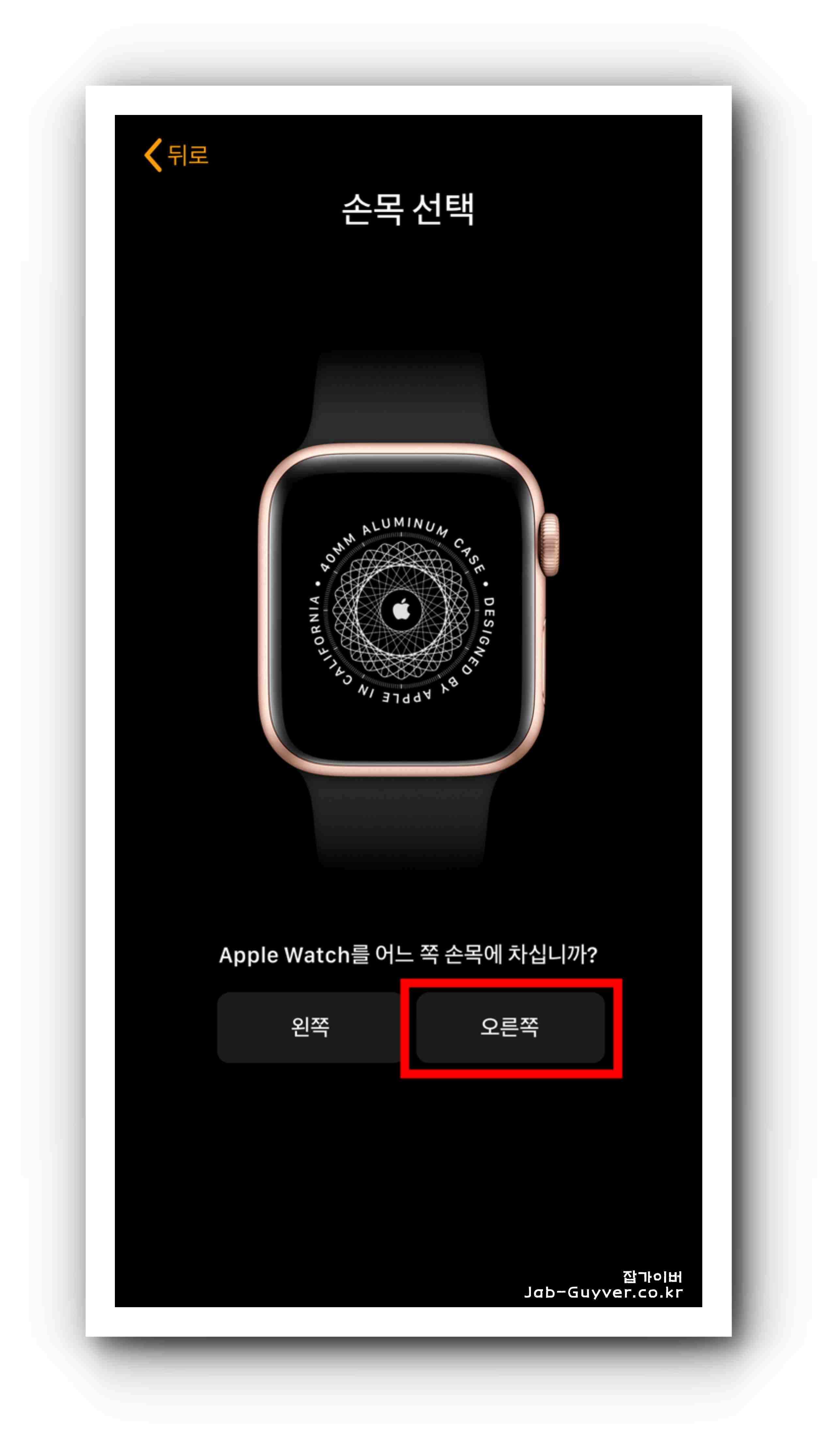 아이폰 화면의 네모 칸에 워치를 맞춰 인식시키면 연결이 완료됩니다. 기존 사용자는 백업에서 복원 또는 새로운 Apple Watch(으)로 설정 중 선택해서 진행하면 됩니다.