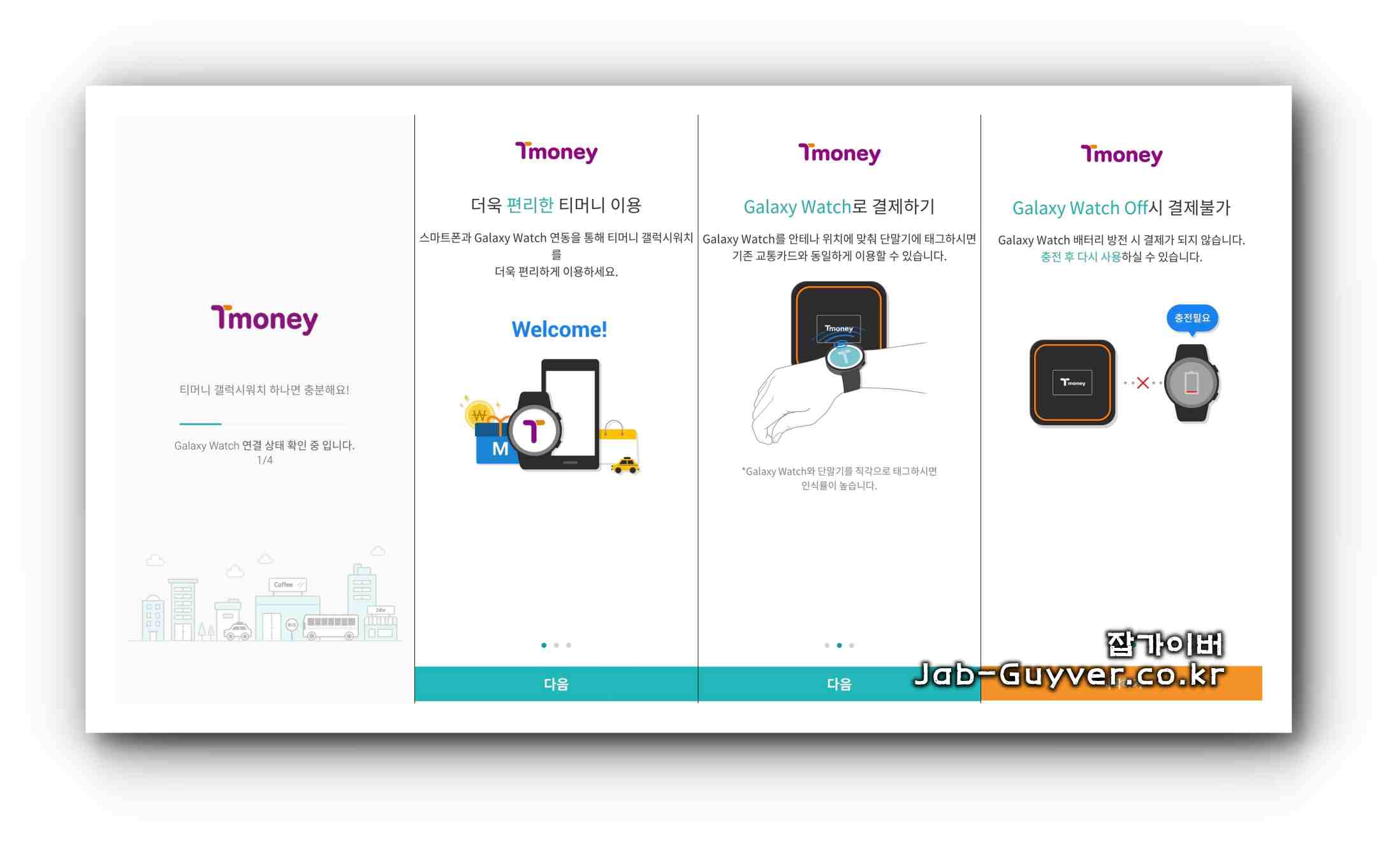 티머니 발급을 해야 갤럭시워치에서도 사용이 가능합니다.