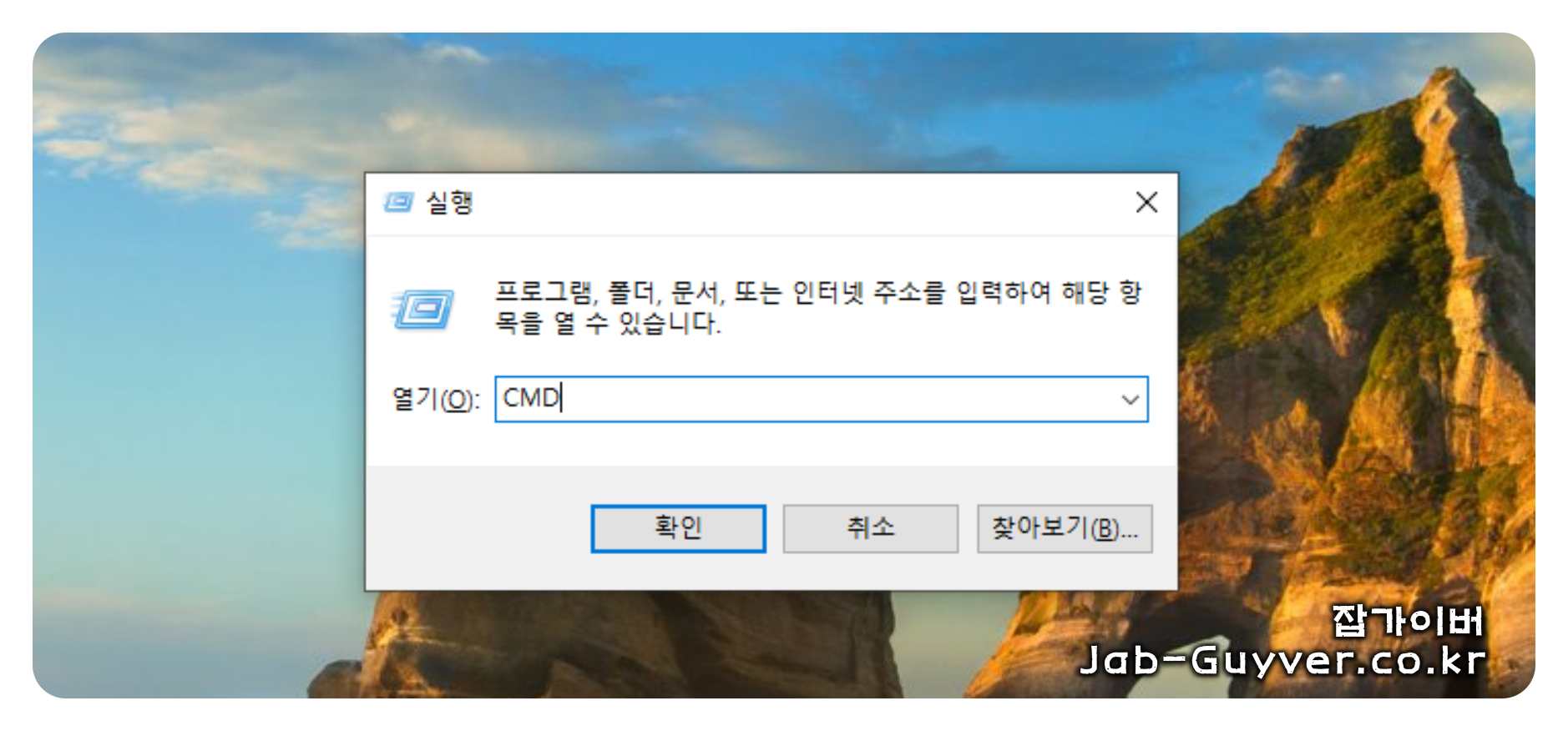 윈도우 키 + R을 눌러 실행창을 실행 후 아래 명령어를 입력합니다.