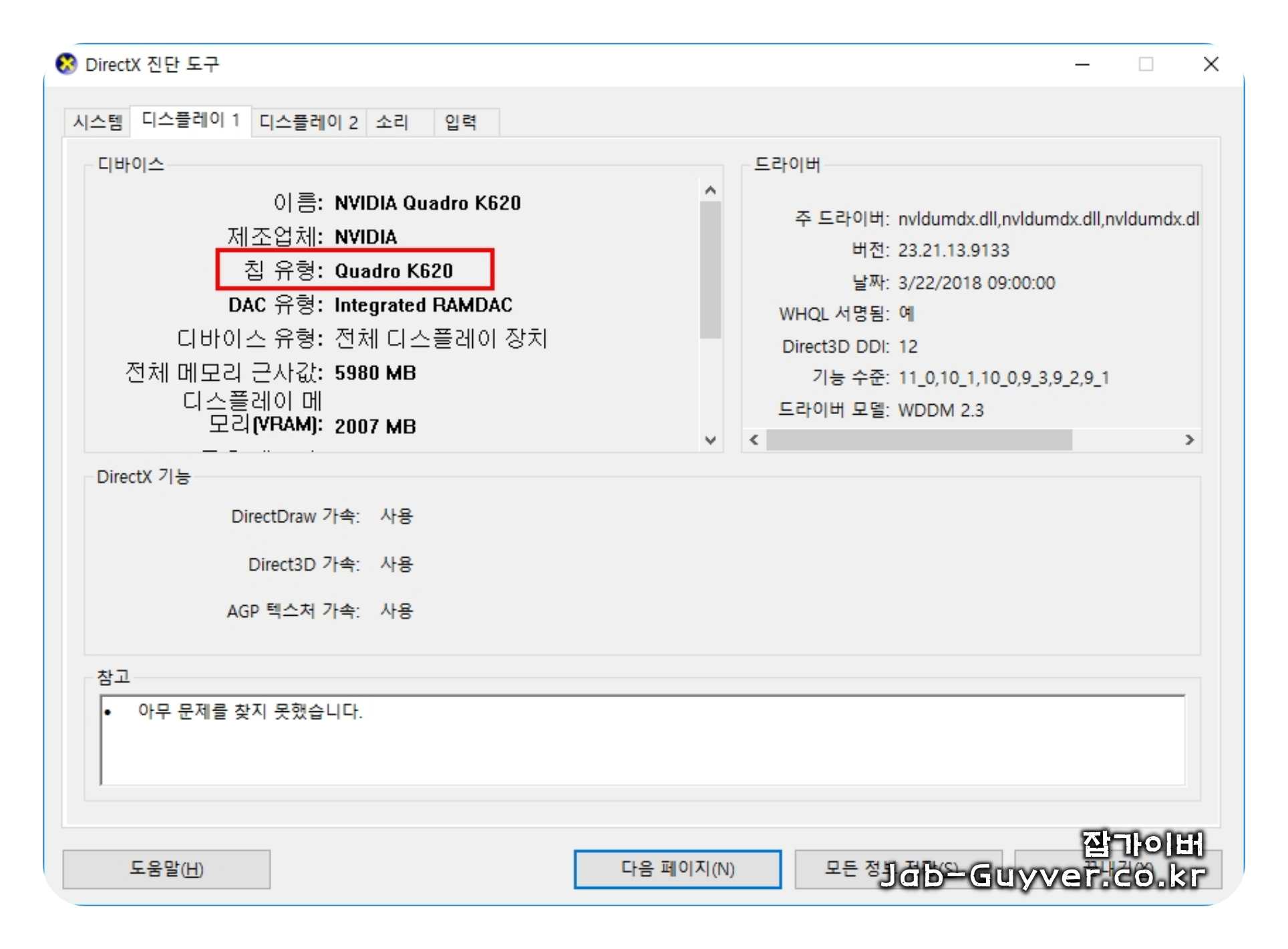 | 드라이버 버전 | 현재 사용 중인 디스플레이 드라이버의 버전 정보입니다. |