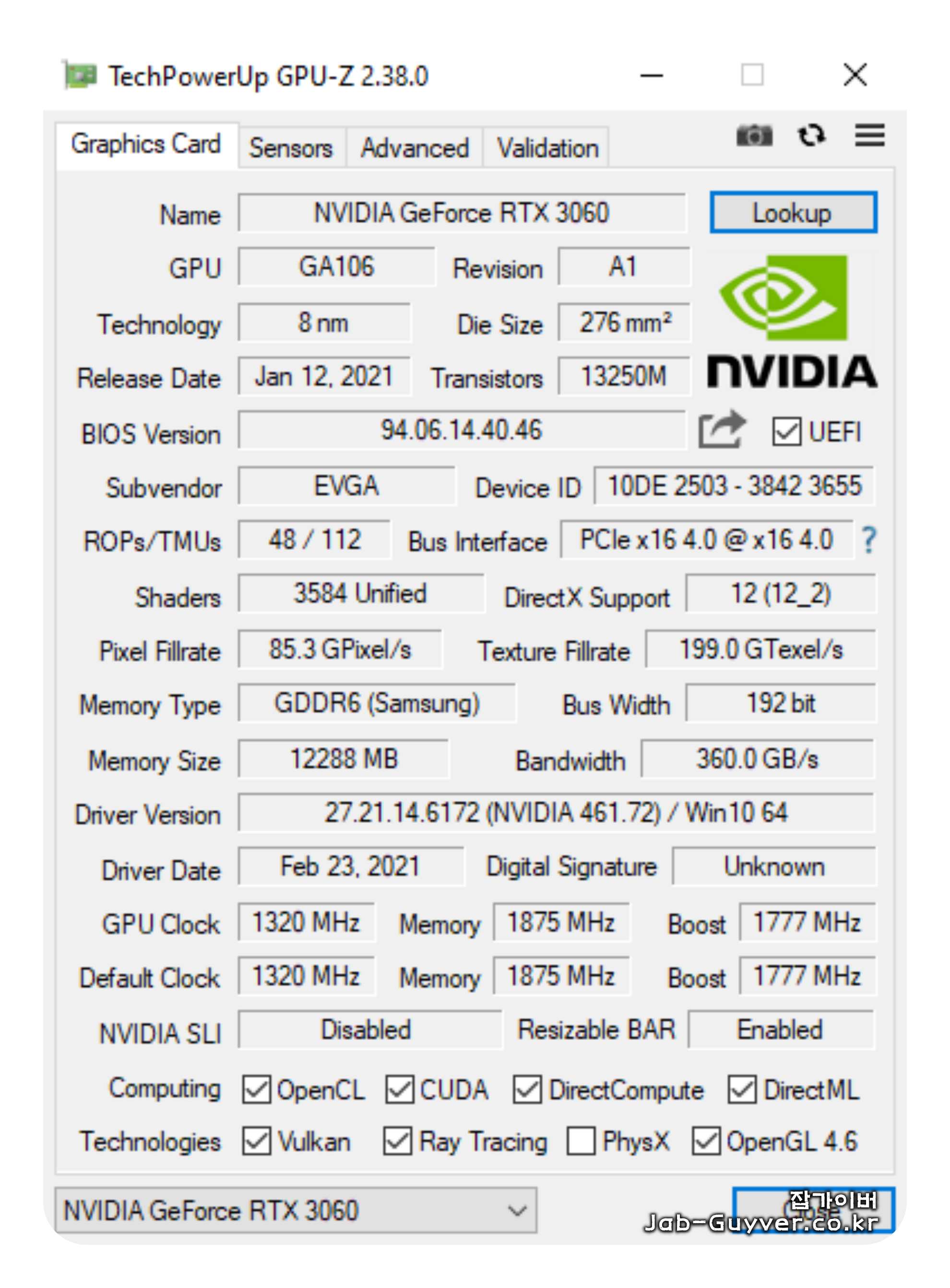 | BIOS Version (바이오스 버전) | 그래픽 카드의 BIOS 버전 |