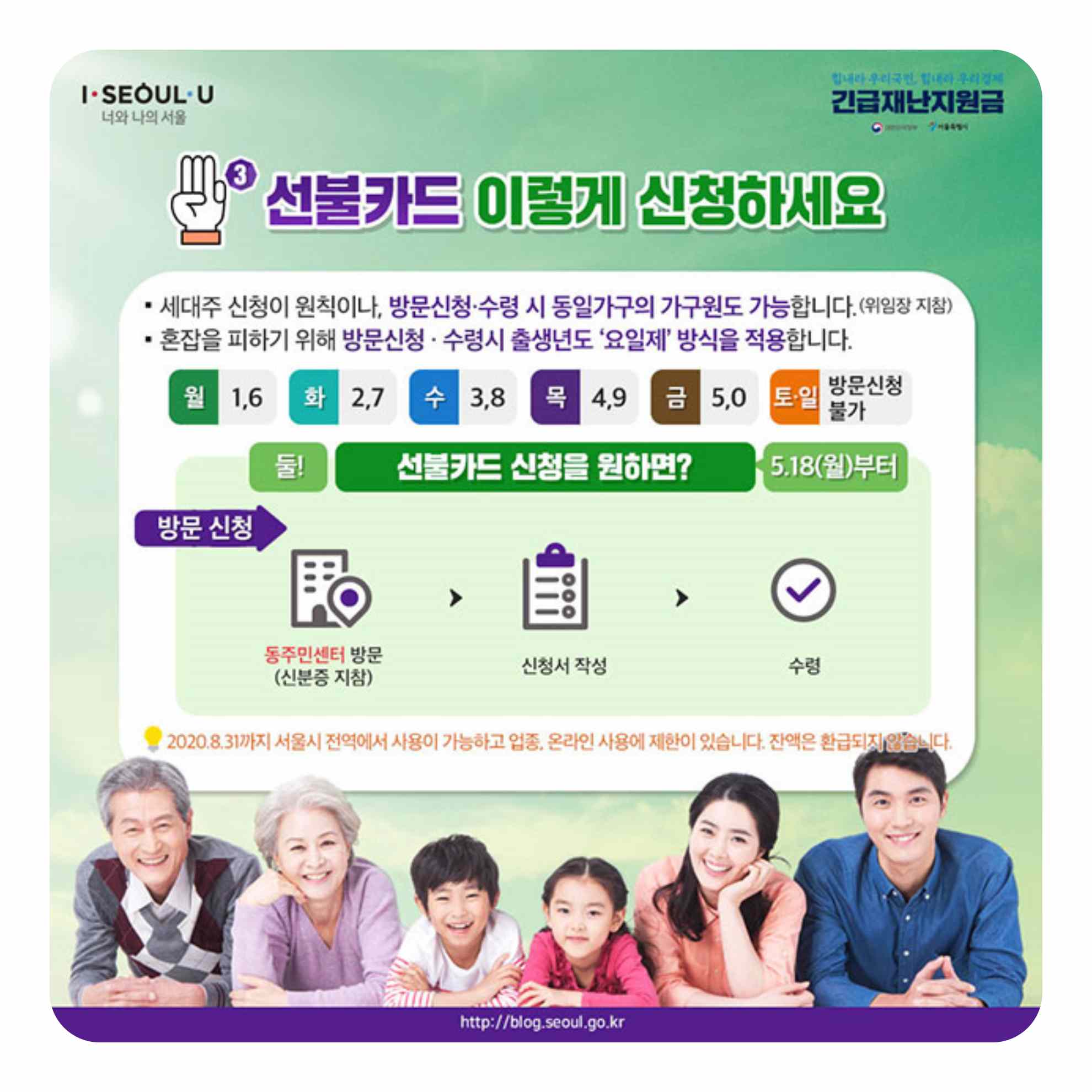 • 각 지방자치단체 홈페이지나 카드사 홈페이지에서 신청할 수 있습니다. 본인 인증을 위해 공동인증서와 휴대폰 본인 인증이 필요합니다.