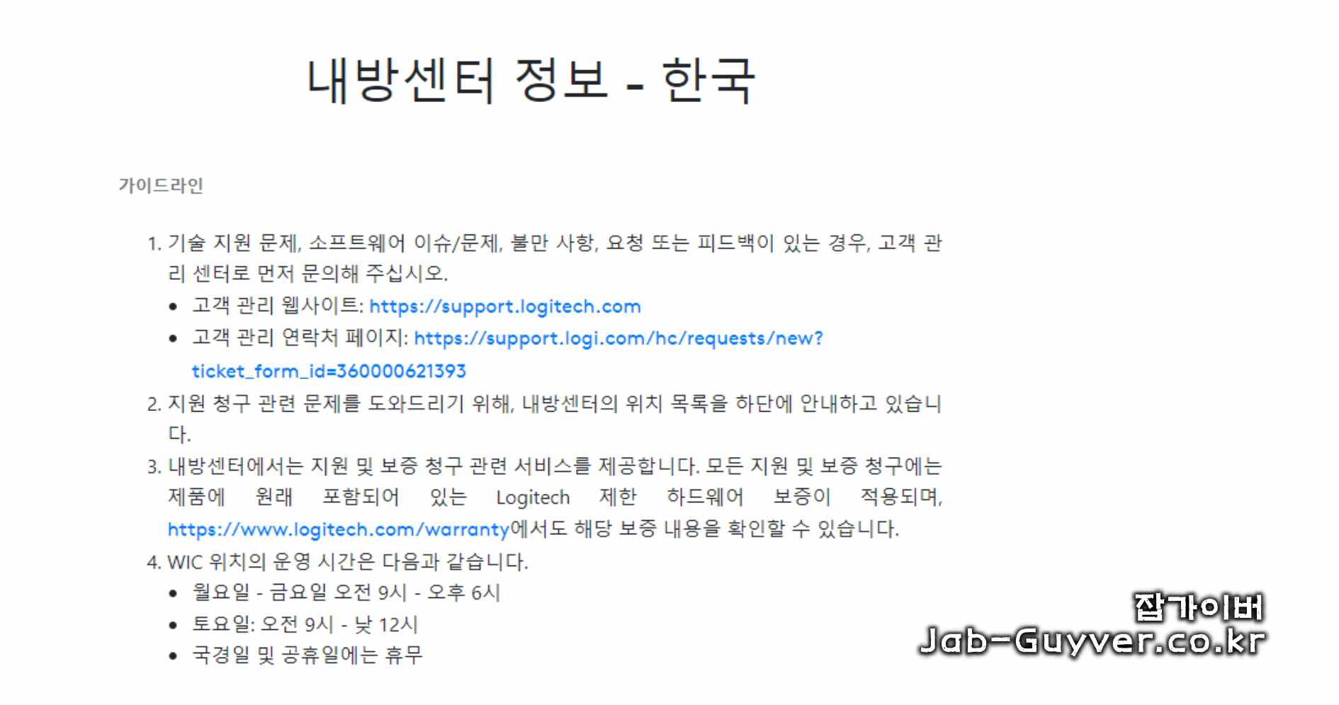 로지텍 고객센터 연락처 및 운영 시간