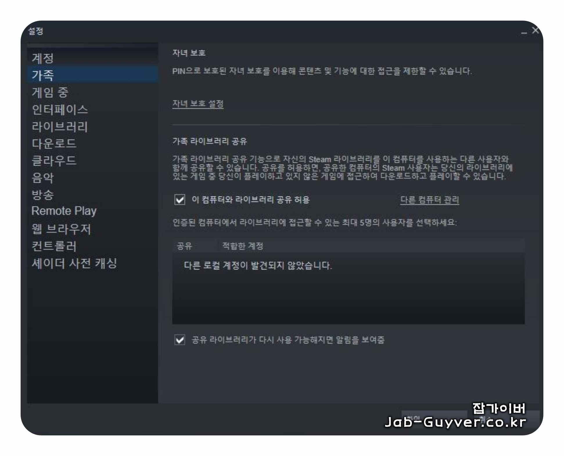 스팀 가족 공유를 설정하는 방법은 아래와 같습니다