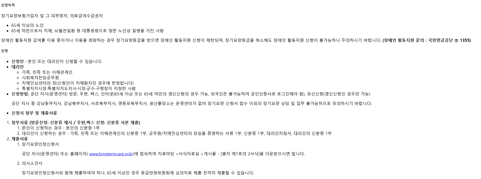만 65세 이상 혜택 - 노인장기요양 보험 신청조건