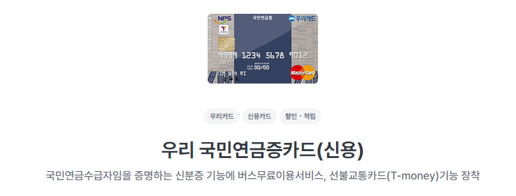 우리카드에서 제공하는 국민연금증 신용카드를 발급받으면 다양한 교통 및 할인 혜택을 누릴 수 있습니다. 이 카드는 어르신들의 일상을 더욱 편리하고 특별하게 만들어 줄 것입니다.