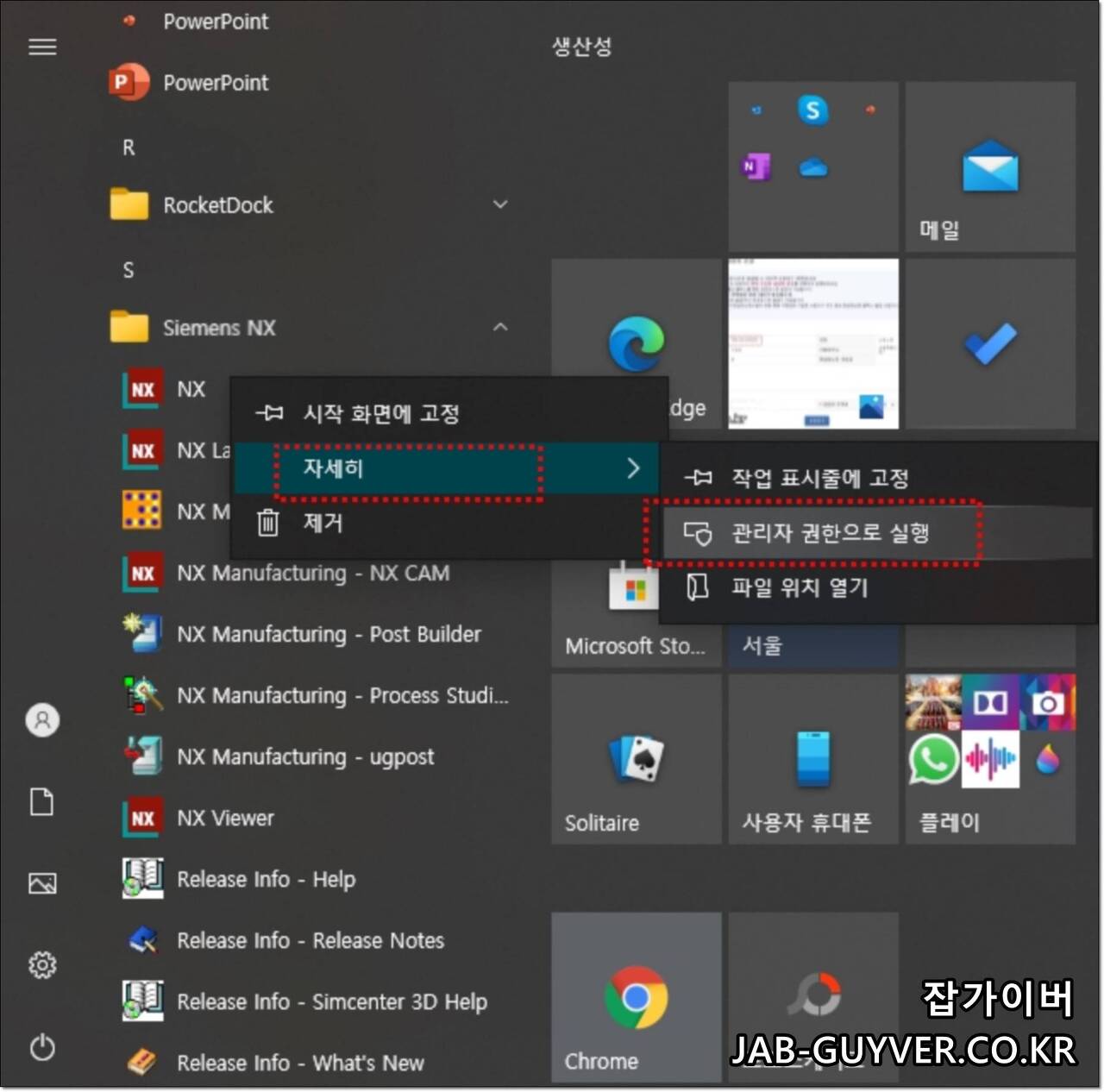 UG NX 관리자 권한으로 실행