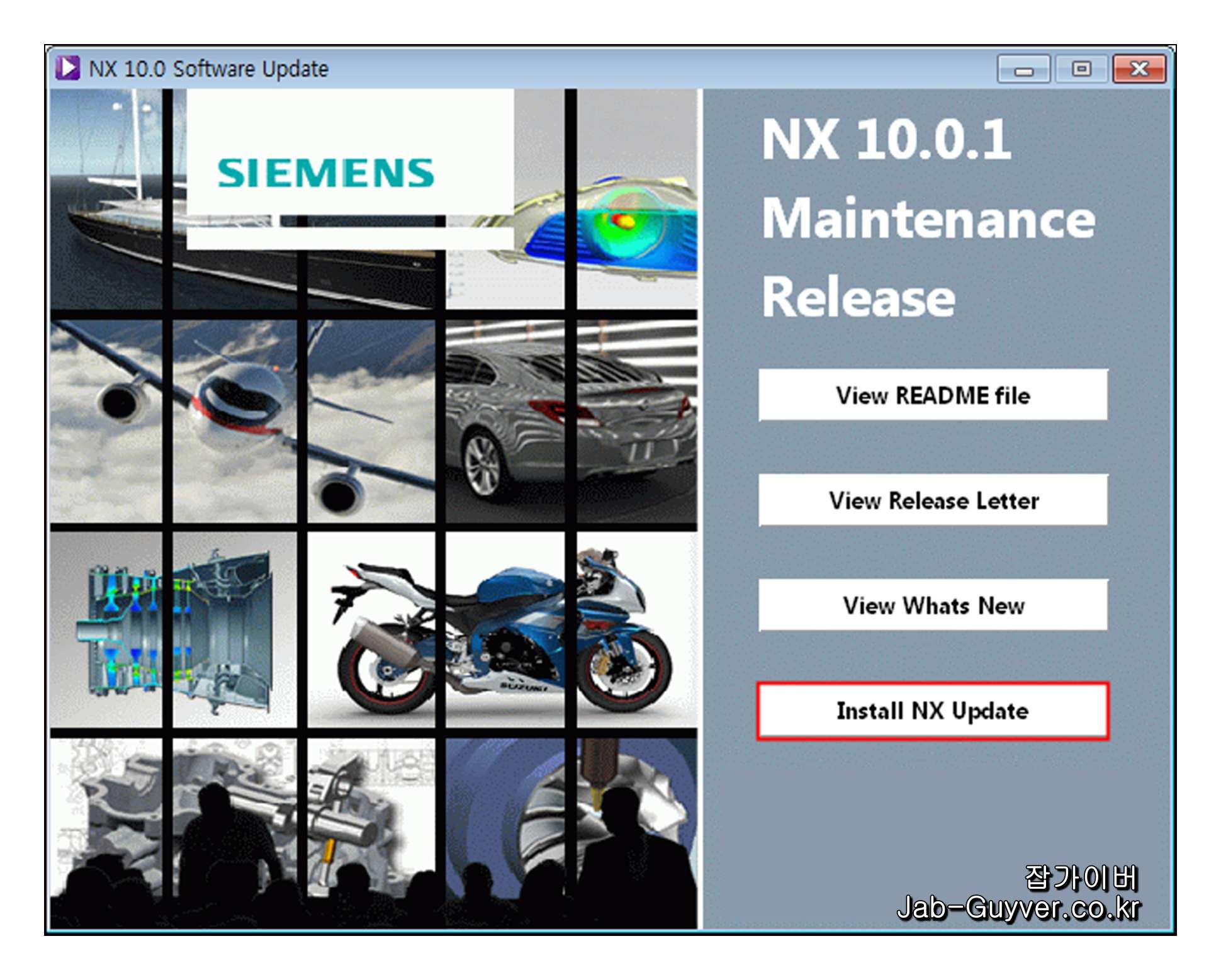 지멘스의 공식 웹사이트에서 최신 버전의 UG NX를 다운로드하고 설치합니다. 업데이트를 통해 이전 버전에서 발생했던 버그와 문제점이 해결될 수 있으며 이때 초기 NX버전이 아닌 QRM과 MP를 각각 업데이트하면 프로그램이 안정적으로 사용할 수 있습니다