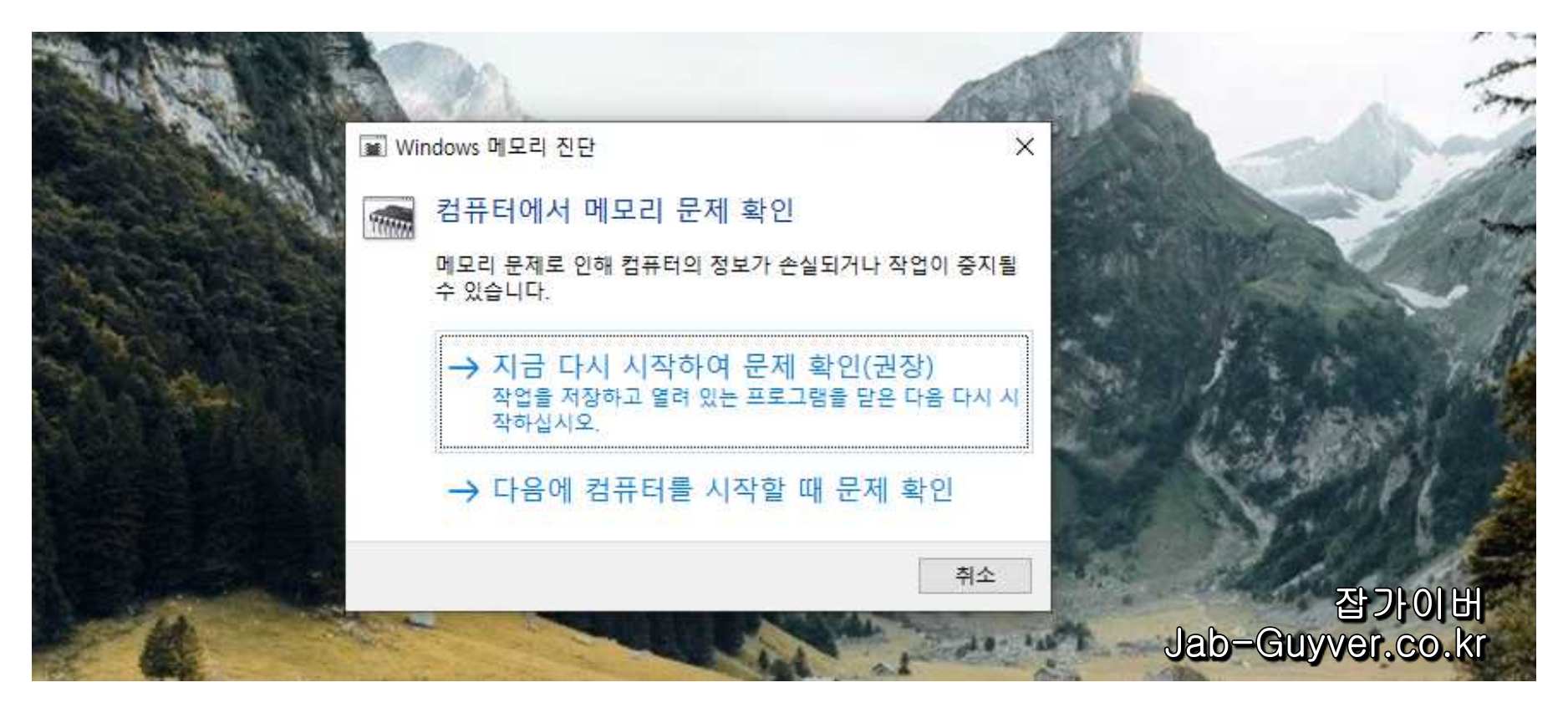 메모리에 문제가 있는지 점검해보세요. Windows에서는 "컴퓨터의 메모리 문제진단" Windows Memory Diagnostic 도구를 사용할 수 있습니다.