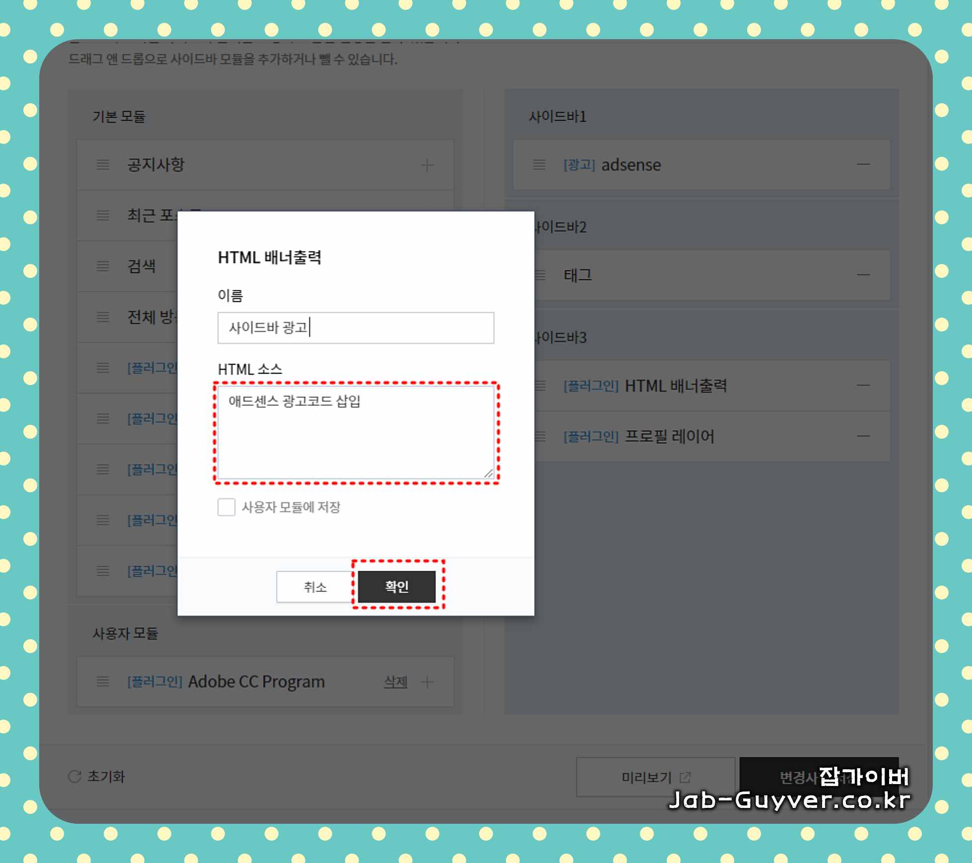 티스토리 사이드바 광고 애드센스 수동 추가 및 고정방법