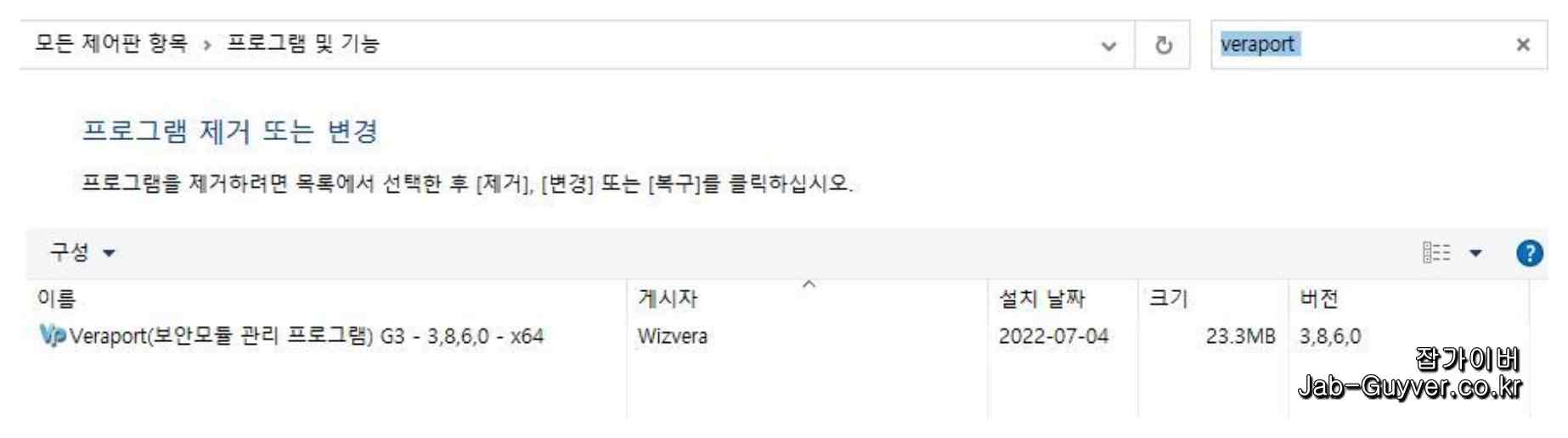 다른 윈도우 버전 사용자: 검색창에 "제어판"을 입력하고 "프로그램 추가 또는 제거" 항목에 실행합니다.