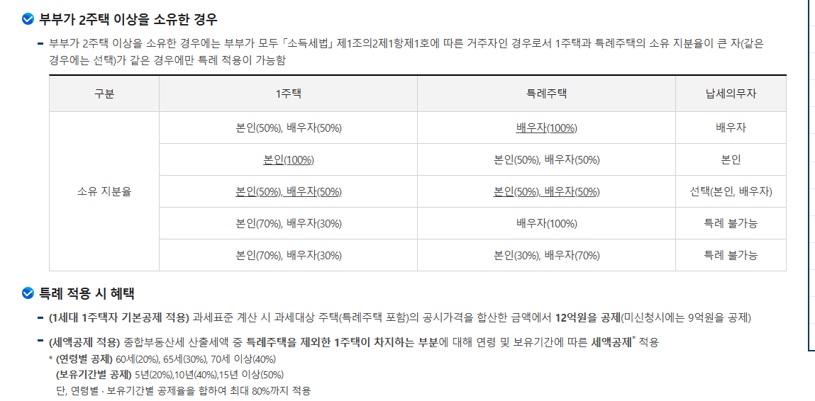 부부 공동명의의 경우에도 거주용 실수요 주택이라면 1세대 1주택자로 인정받을 수 있습니다.