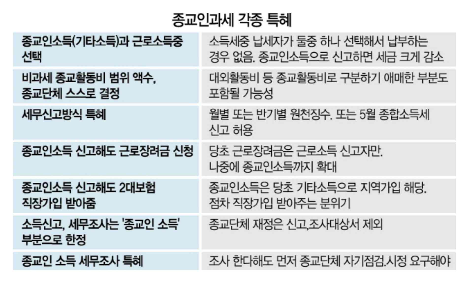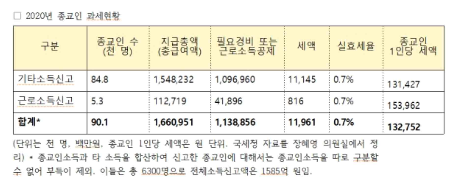 종교인 소득세 과세 세금 찬성 및 반대 표