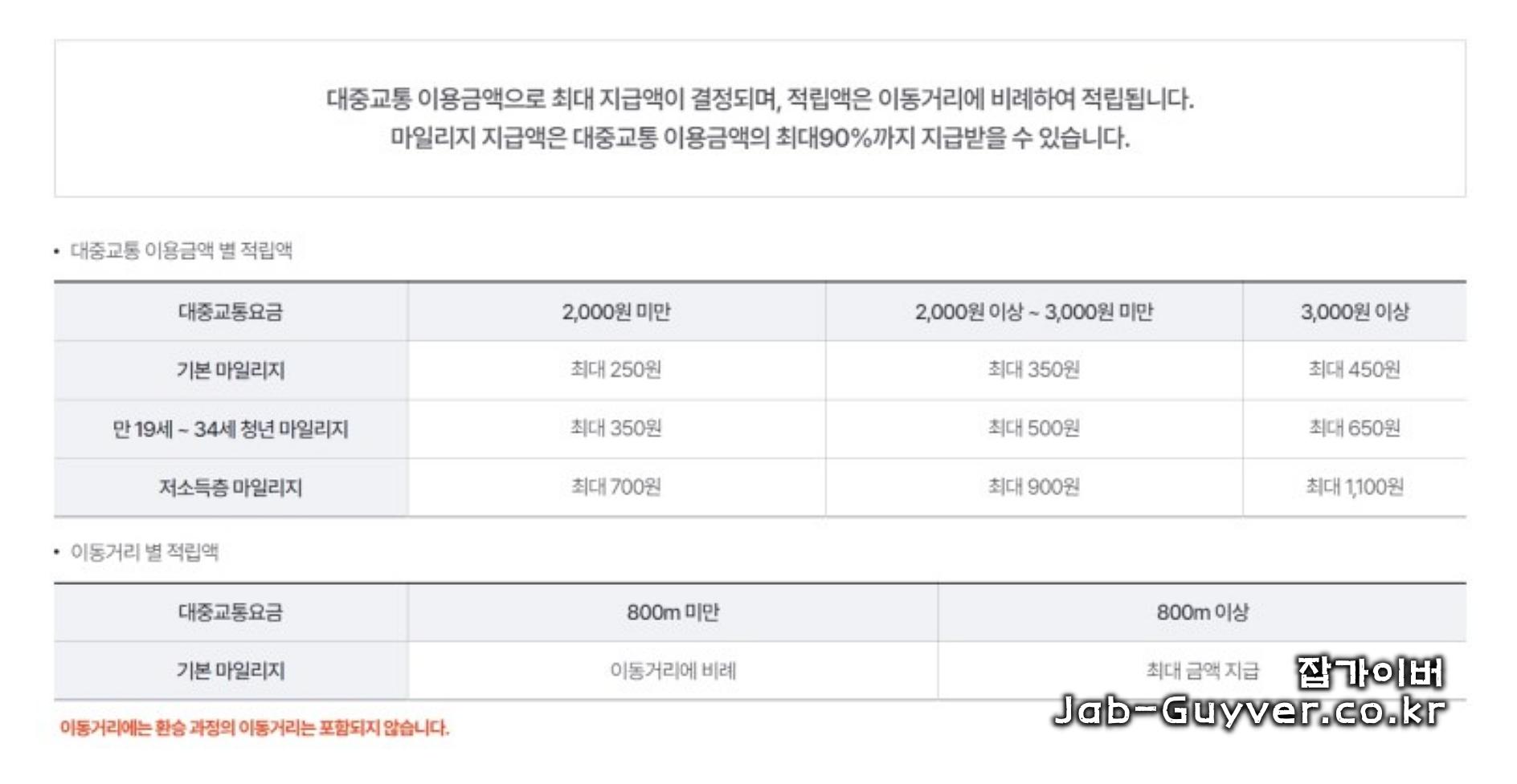 교통요금 지출액별 마일리지 2천원 미만 시: 최대 250원 2천원 미만 시: 최대 500원 2천원 미만 시: 최대 350원