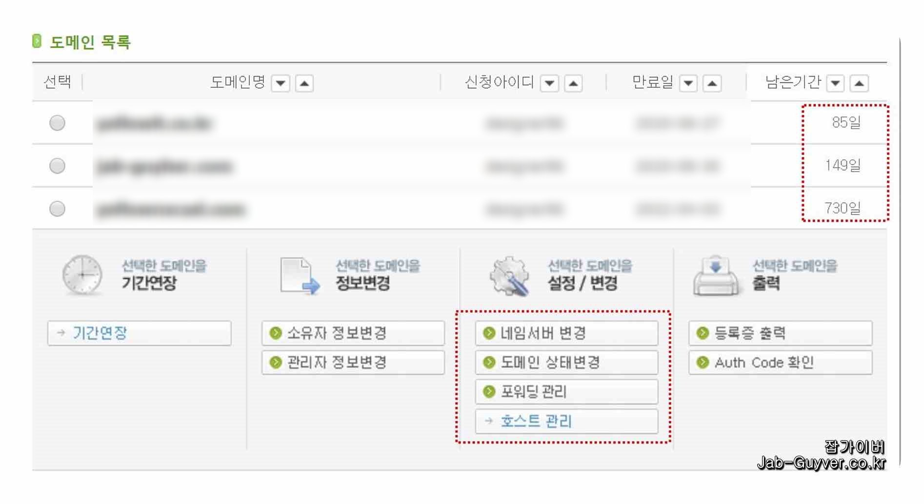 도메인을 구입하면 도메인 목록에서 등록 기간과 만료일까지 남은 시간을 확인할 수 있습니다.