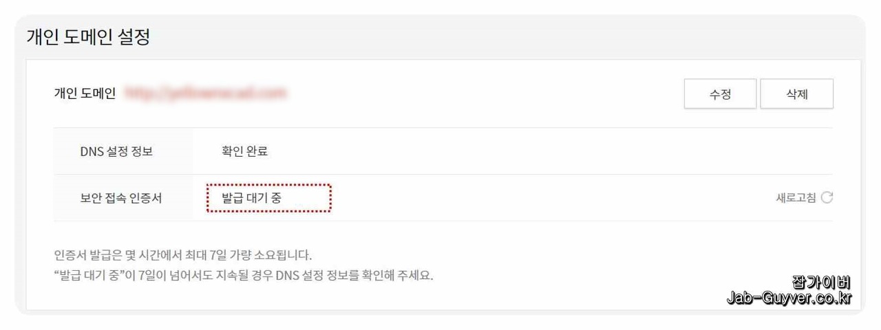 티스토리 보안 접속 인증서 발급 대기중 지연
