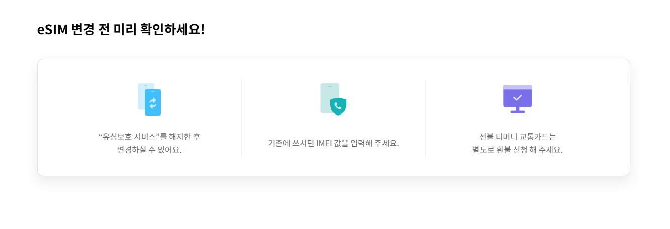 핸드폰 uSIM -> eSIM 변경 개통 시 주의사항
