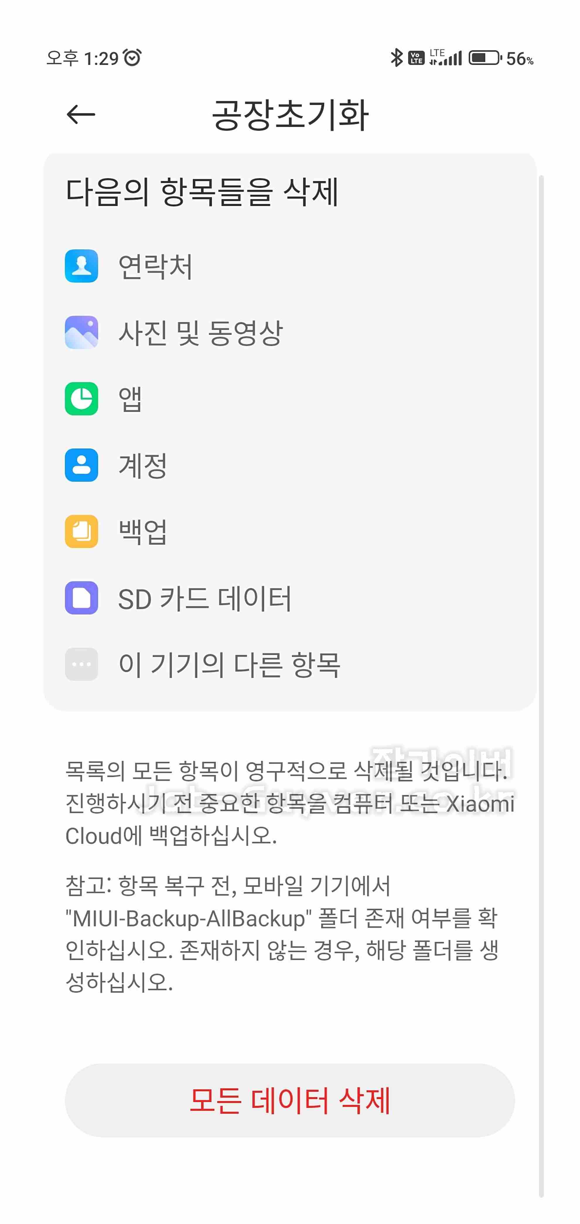 만약 위의 방법들로 문제가 해결되지 않으면, 핸드폰을 공장 초기화해 볼 수 있으며 다만, 이 때 핸드폰의 모든 데이터가 삭제되므로 백업을 꼭 해두는것이 좋습니다.
