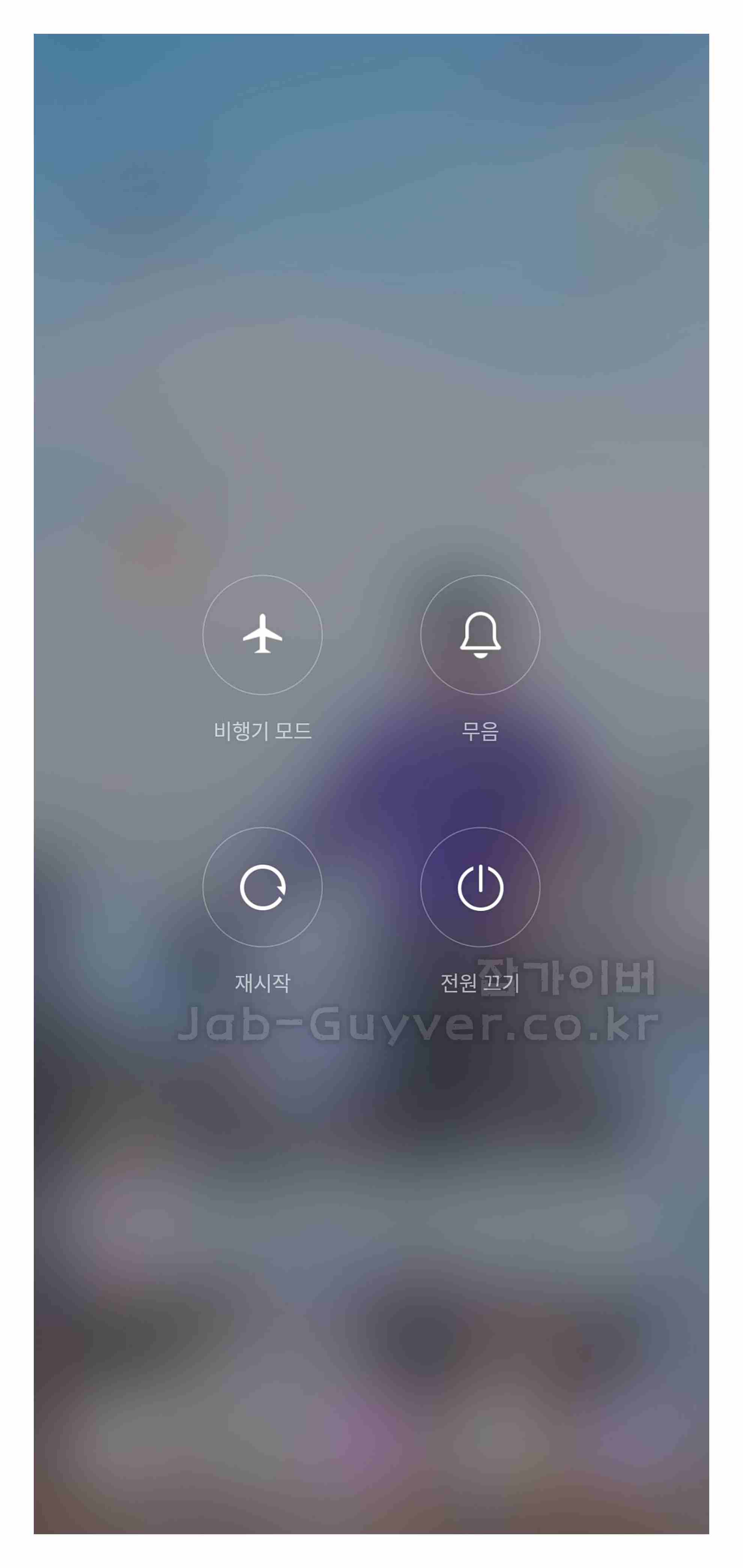 1. 핸드폰 전원 버튼을 길게 눌러 전원 메뉴를 띄웁니다.