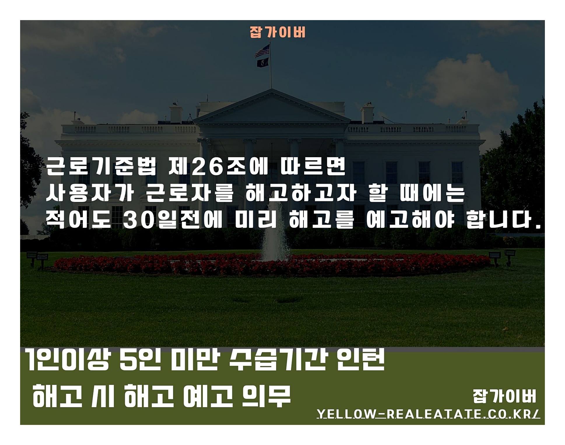 1인이상 5인 미만 수습기간 인턴 해고 시 해고 예고 의무