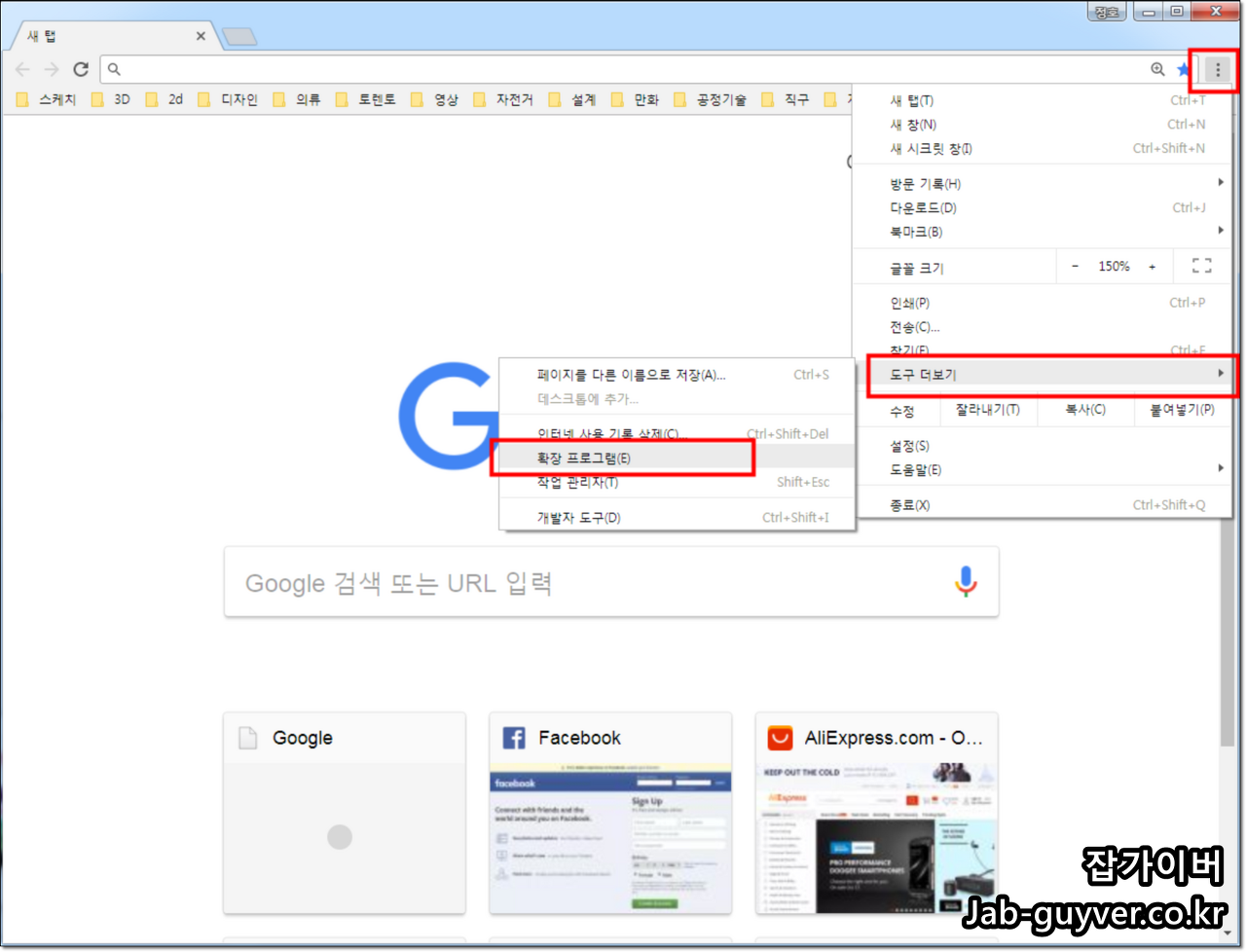 구글 크롬의 확장 프로그램 중 일부가 충돌을 일으켜 크롬 실행 시 첫페이지가 느려지는 문제를 일으키는 경우가 있습니다.