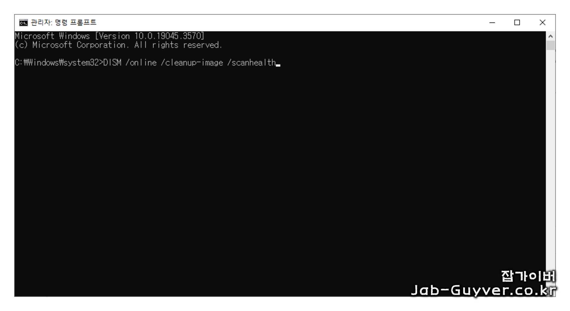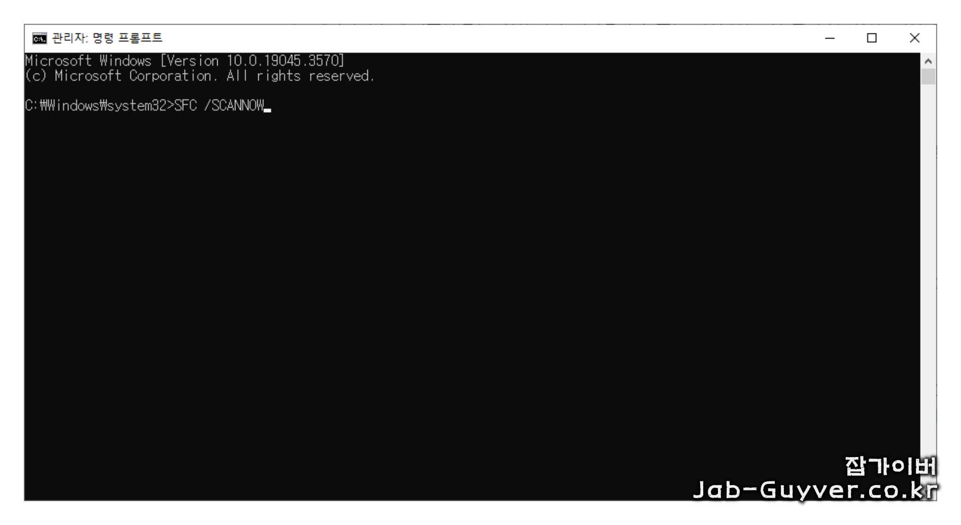 관리자 권한 명령 프롬프트를 열고, 윈도우가 C:에 설치되어 있다면 아래 명령을 입력합니다.