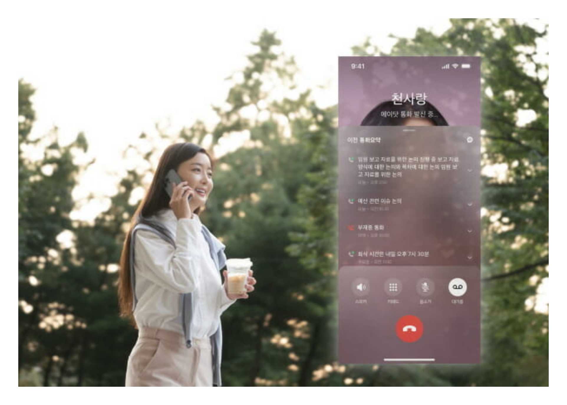 통화를 받을 때도 일반 다이얼러 대신 에이닷 전화를 통해 수신하게 되며, 수신 화면에서는 상대방과의 이전 통화 요약이 제공됩니다.
