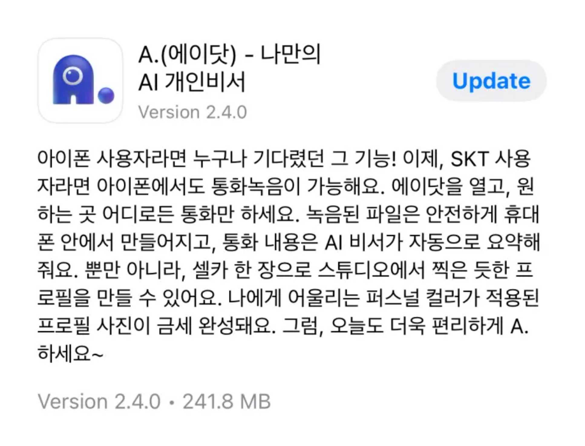 아이폰 전화통화 녹음 무료앱 - 에이닷 SK 텔레콤